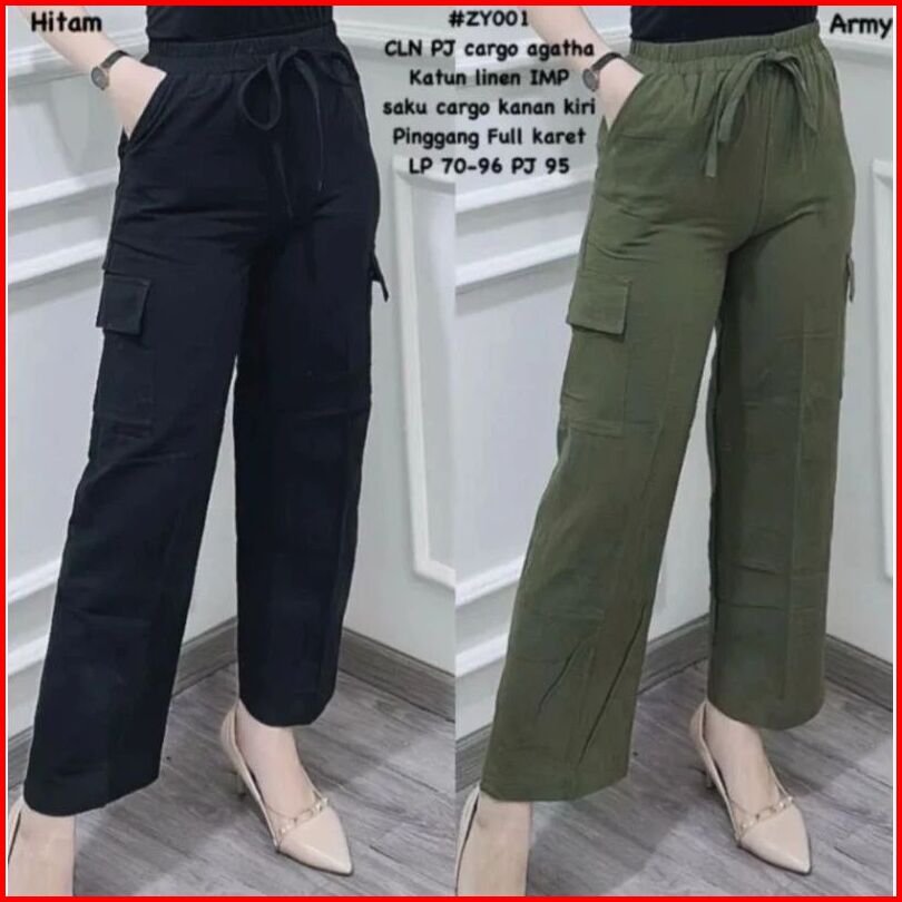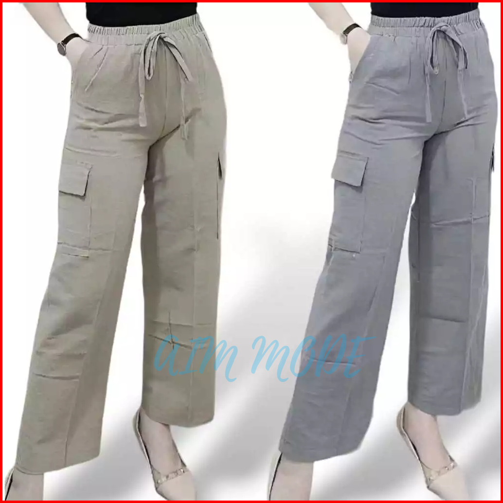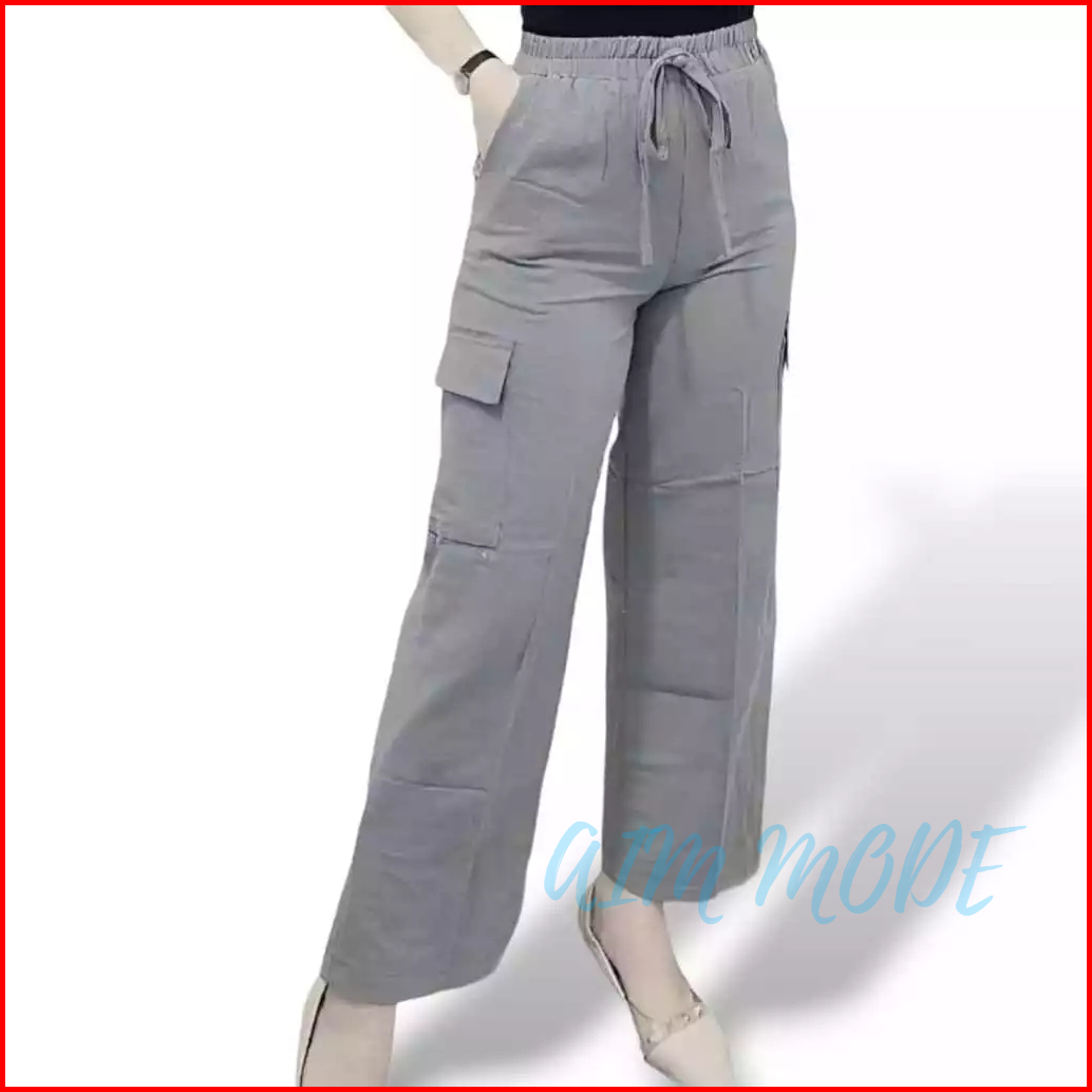 Celana Kulot Cargo Wanita Higtwaist Korean Style Drill Non Streach