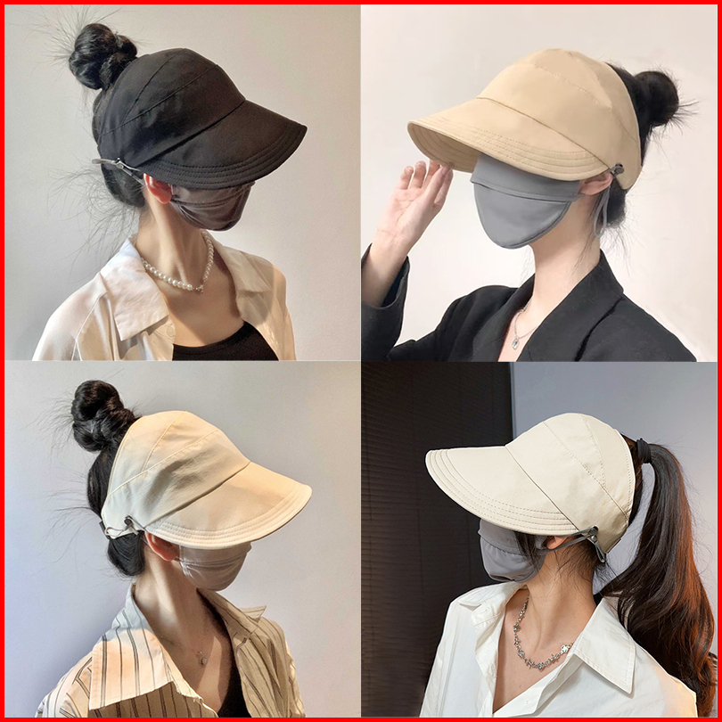Gooynn Topi Kait Masker Anti Uv Topi Pantai Wanita Uv Protection Gaya Jepang Topi Korea Wanita Visor Anti Uv Lipat Adem
