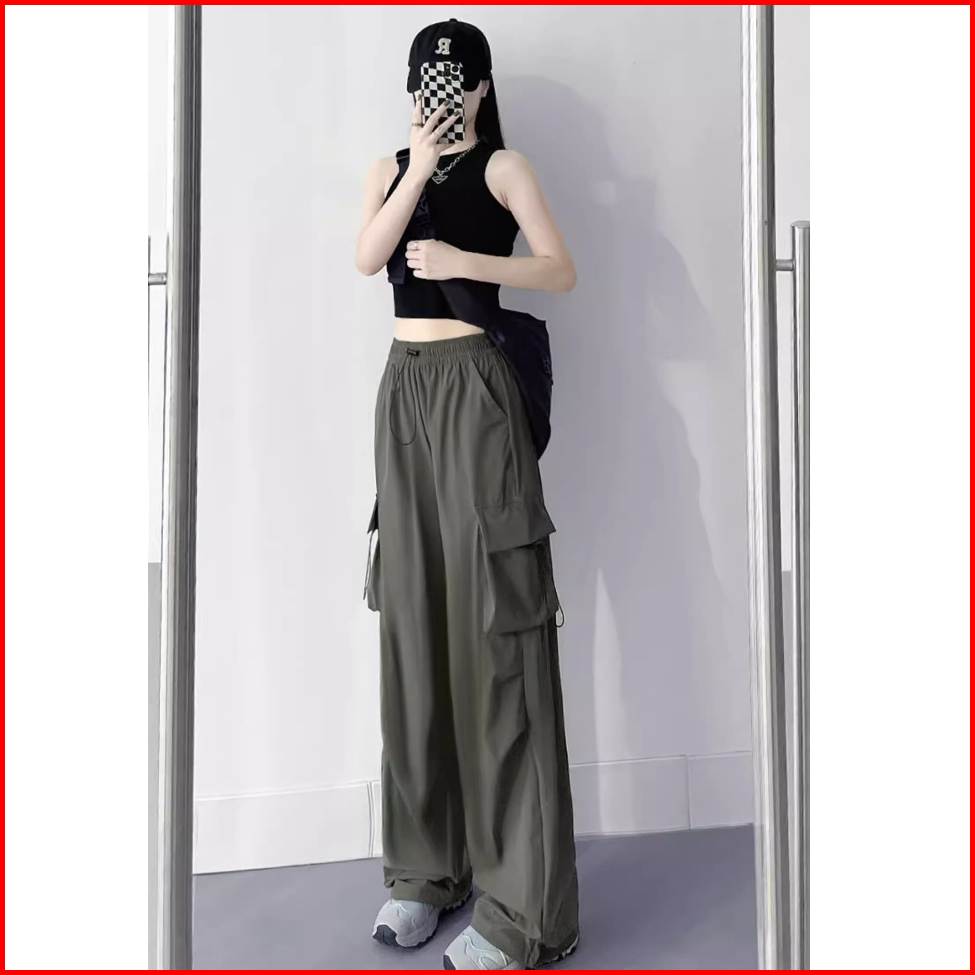 Anne Cargo Celana Panjang Wanita Highwaist Loose Korea