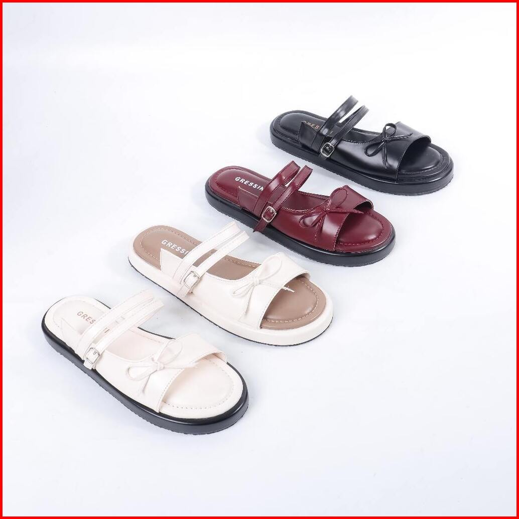 Gressini - Sandal Platform Wanita Kekinian Sandal Slop Tali Pita Empuk Terbaru