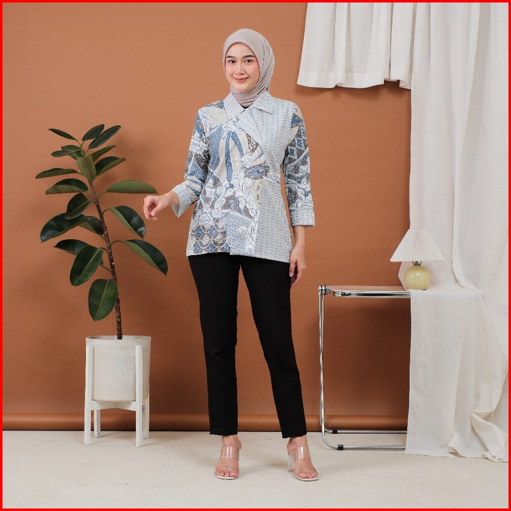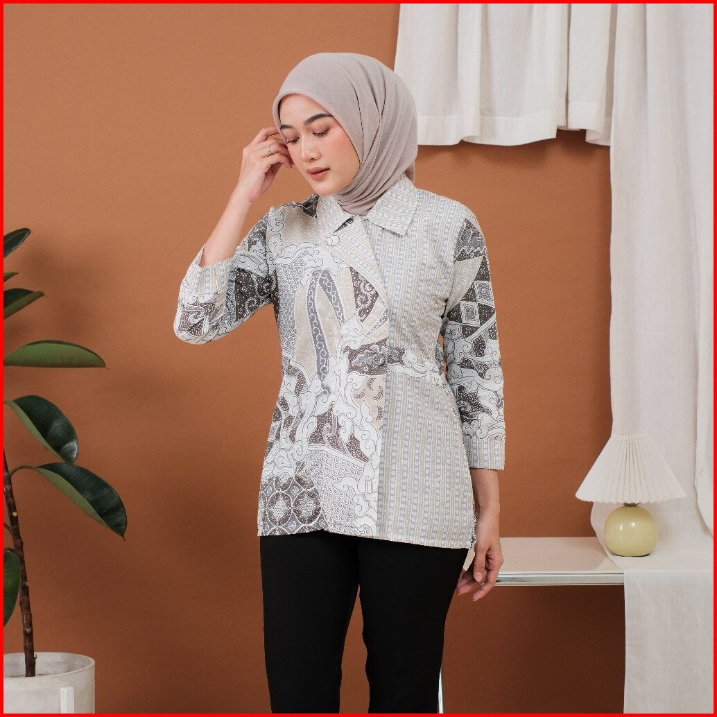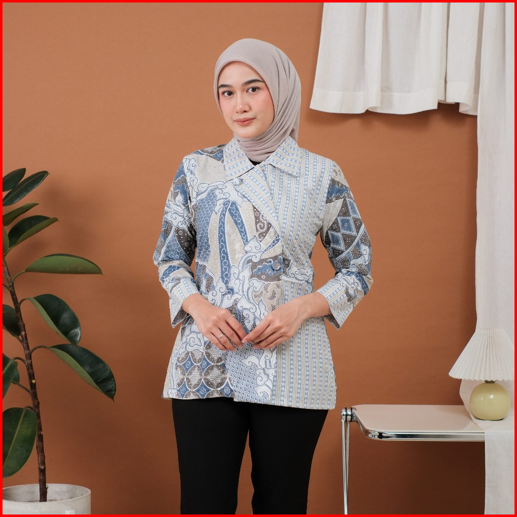 Djowo Batik Kerja Wanita Modern Lengan 3 4 Panjang Motif Davina Series Atasan Kantor Jumbo Terbaru