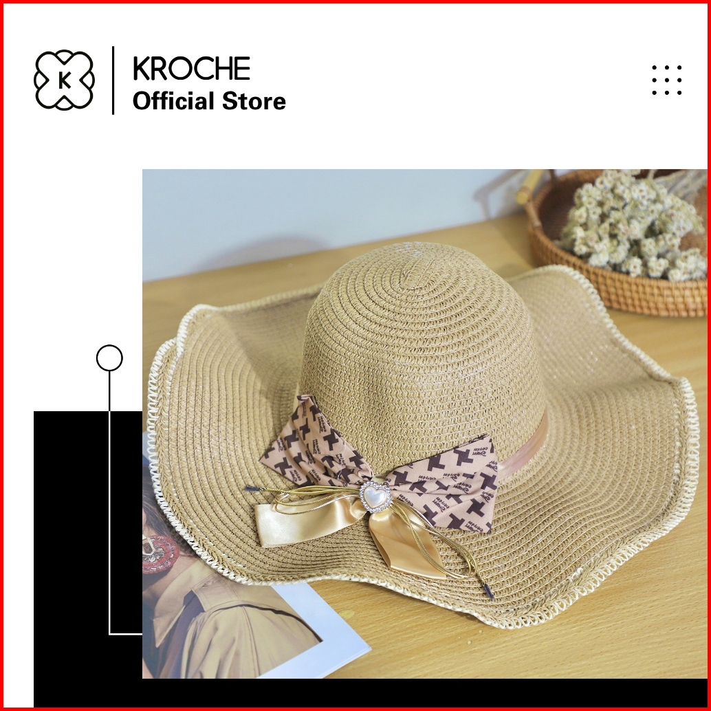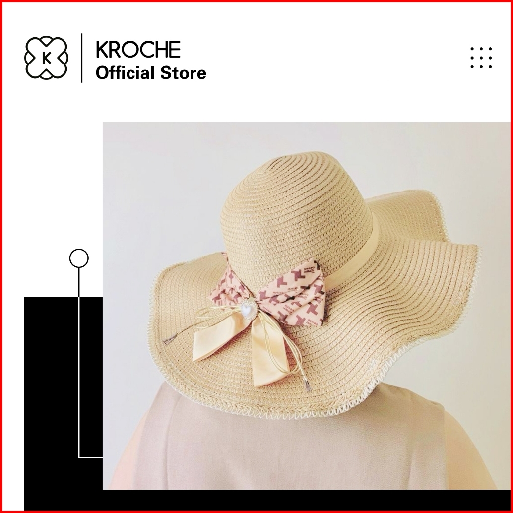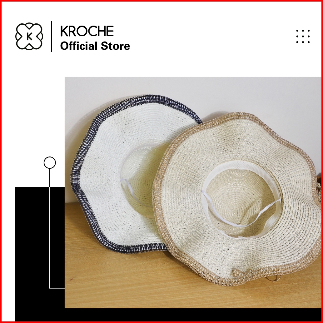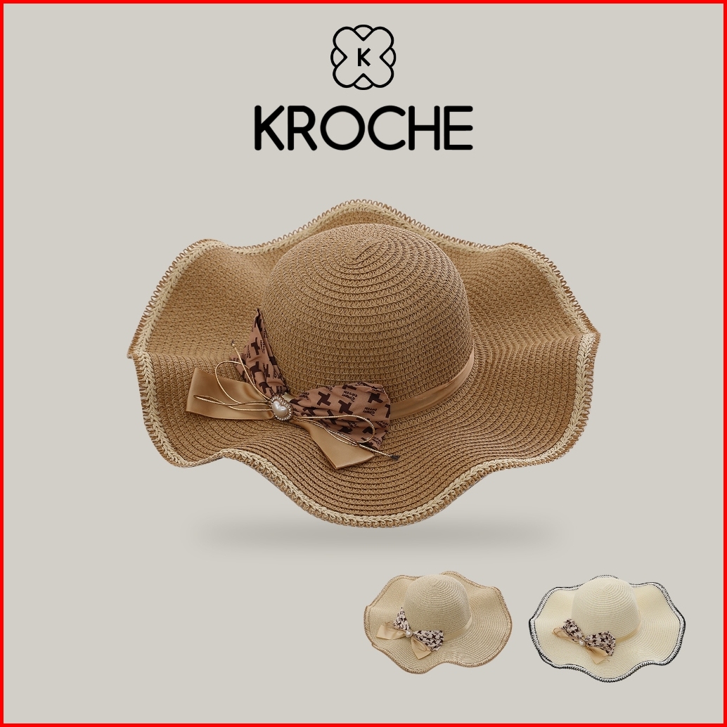 Kroche - Topi Pantai Topi Wanita Kekinian Import Topi Rajut Jerami Helen Summer Hat Fashion