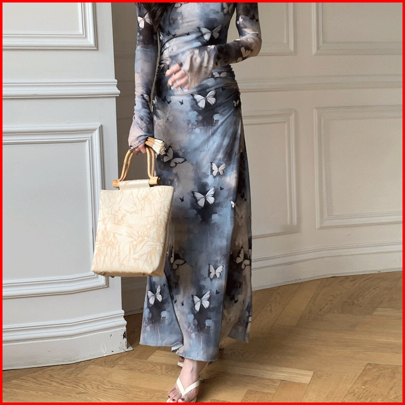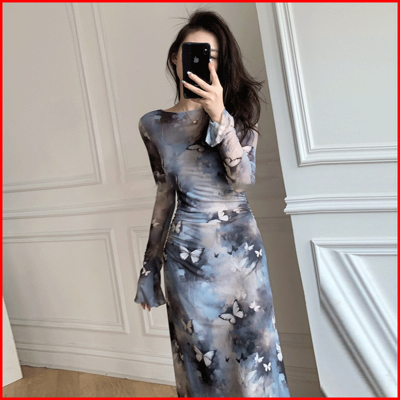 First Girl - 9194 Gaun Mesh Pinggang Ramping Motif Kupu Kupu Gaun Kupu Kupu Gaun Bunga - G047