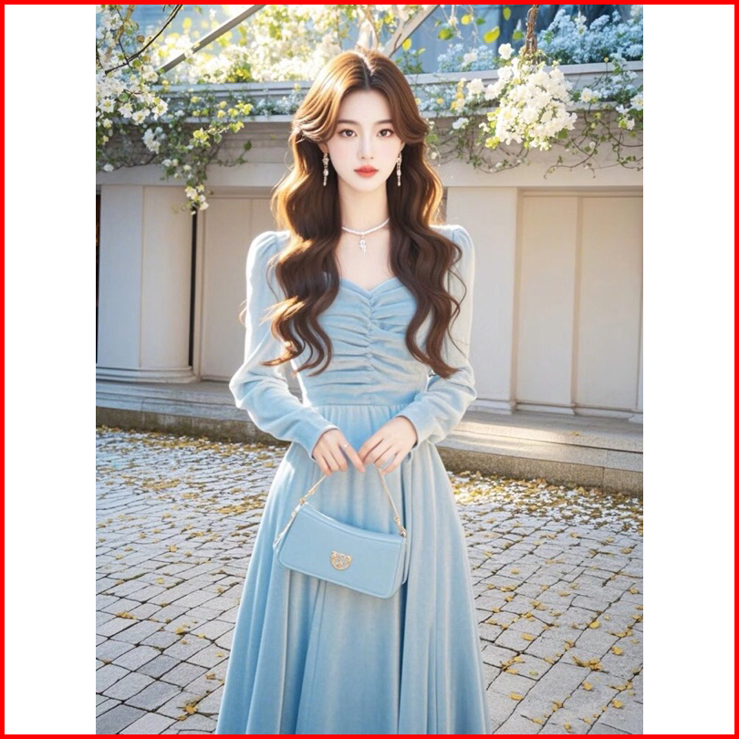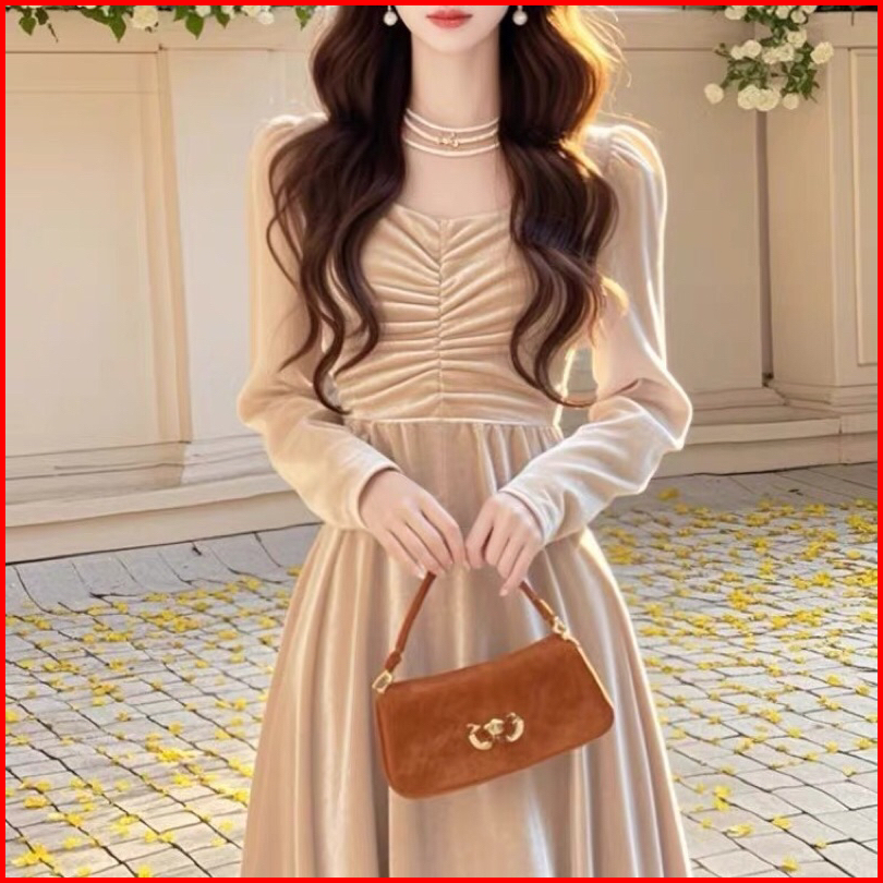 First Girl - French Style Elegant Women S Dress Autumn 2025 Simple Casual Long Sleeve V-neck Daily Wear Gaun- G050