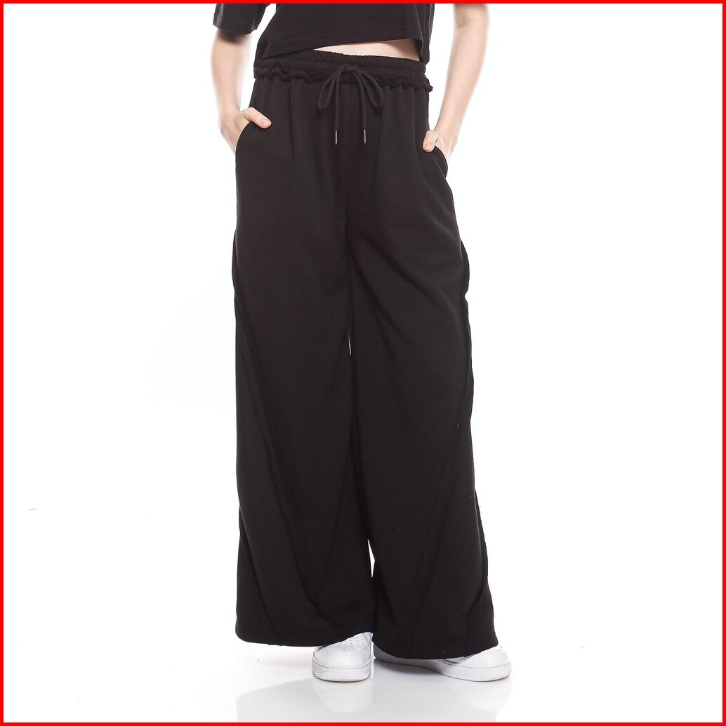 Enough For Today - Celana Panjang Wanita Baggy Pants Loosepants Y2k Women Wide Leg Polos Fleece