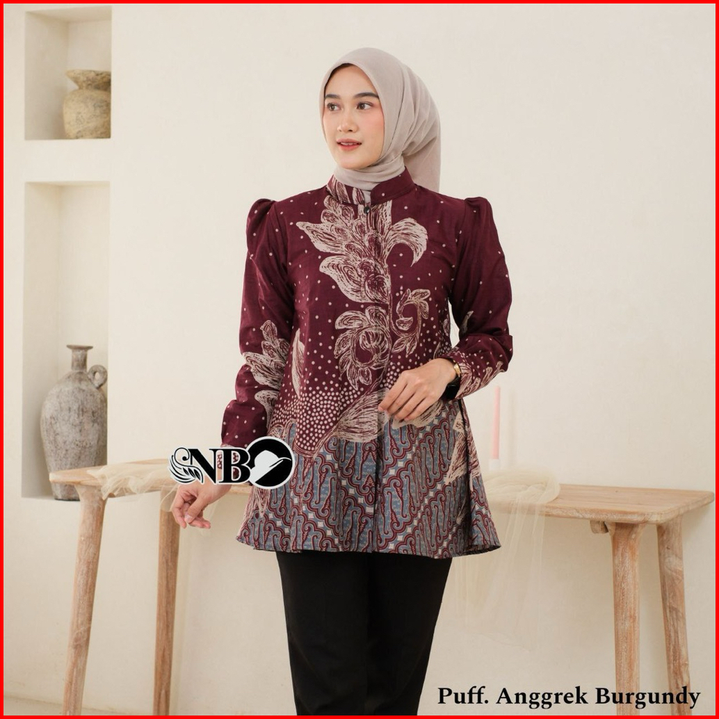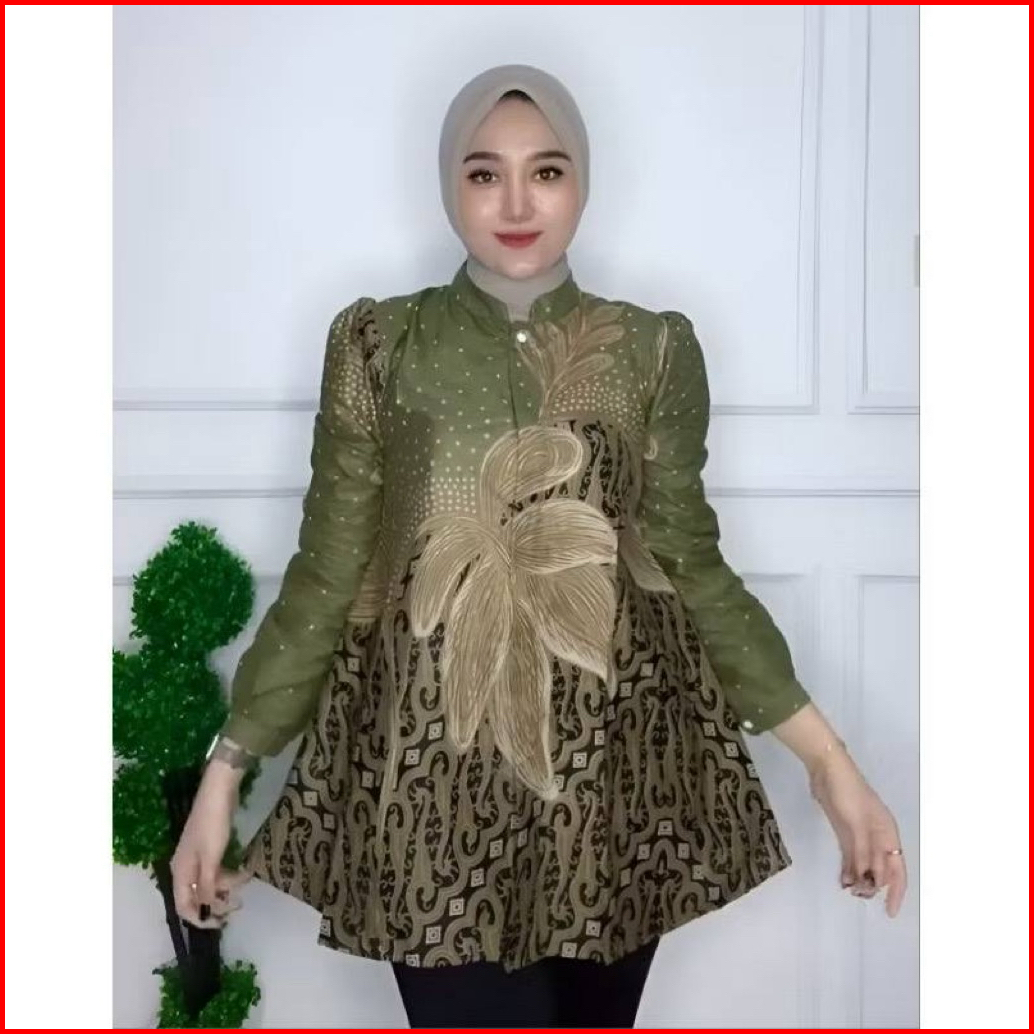 Baju Atasan Batik Wanita Blouse Terbaru Batik Kerja Wanita Lengan Balon Batik Seragam Kerja Kantor Seragam Modern