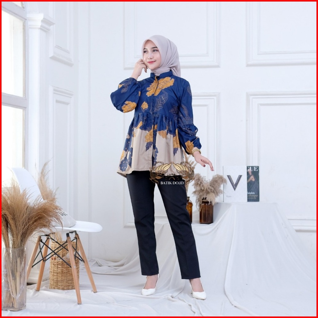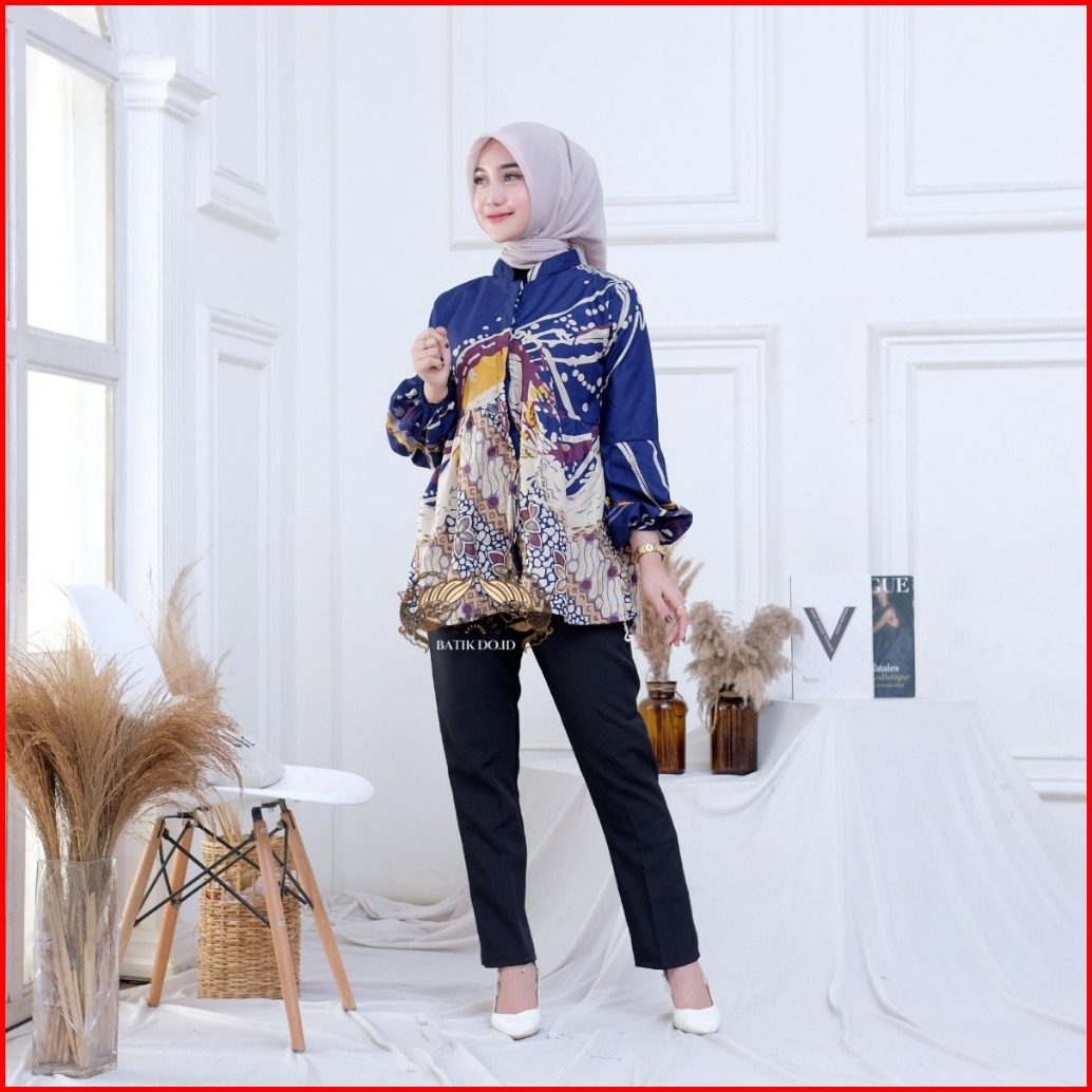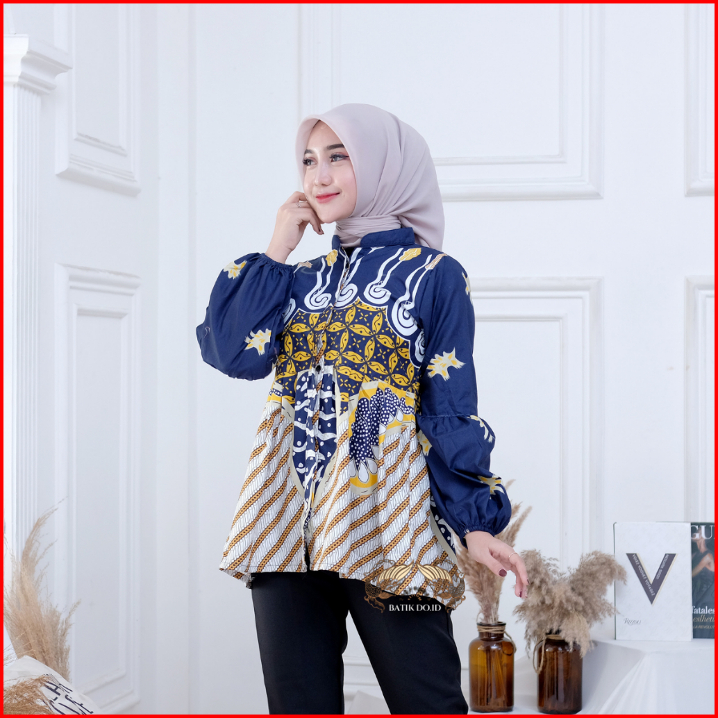 Batikdo.id Atasan Baju Batik Wanita Jumbo Modern Blouse Kerja Lengan Balon M L Xl Xxl