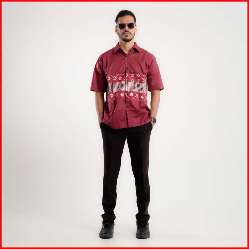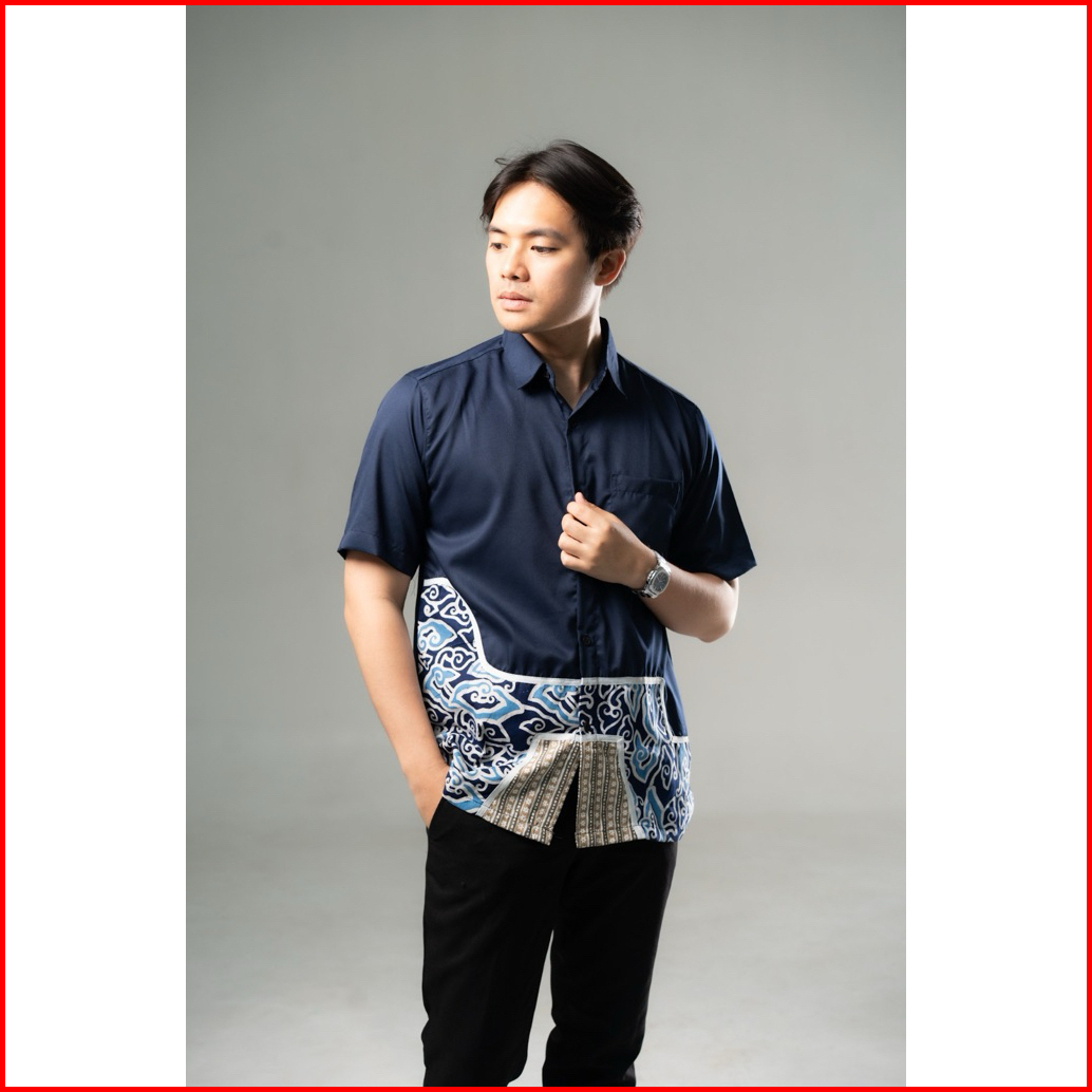 Kemeja Batik Pria Lengan Pendek Kombinasi Polos Motif Modern Terbaru
