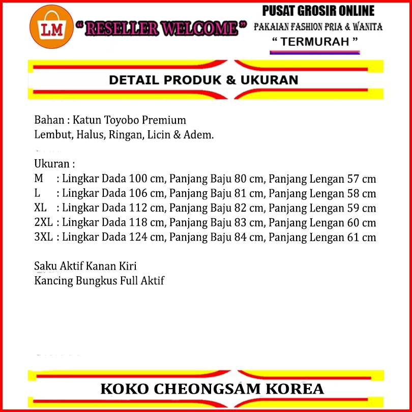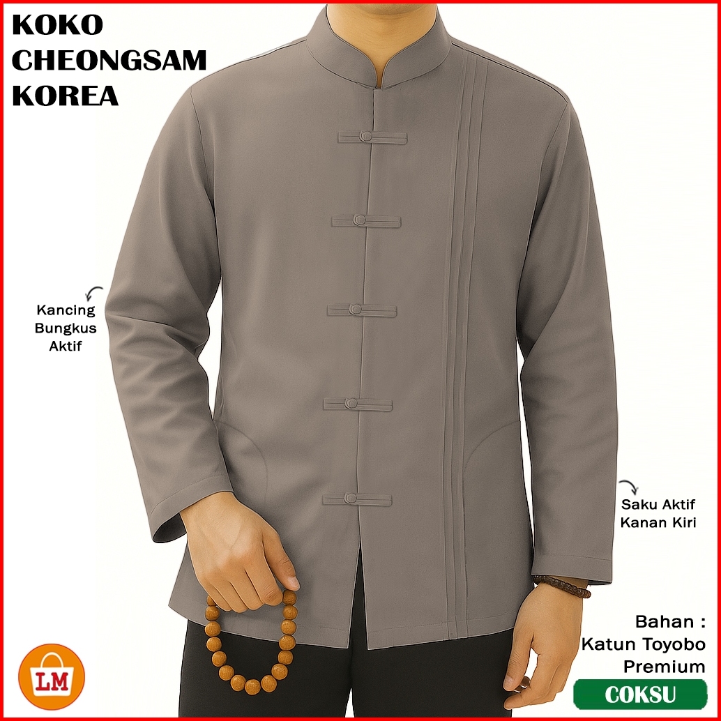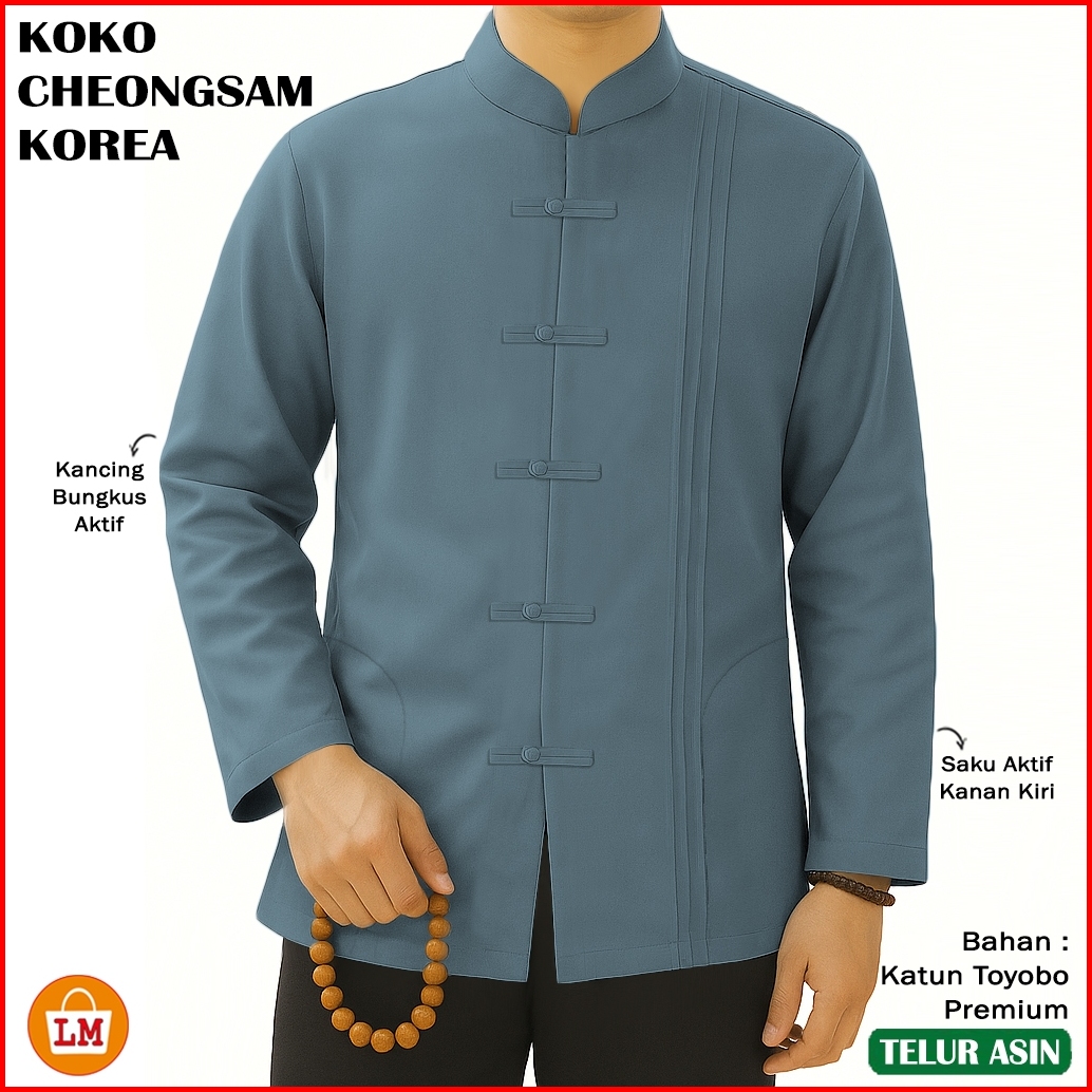 Baju Koko Pria Muslim Koko Tionghoa Korea Lengan Panjang Bahan Kain Katun Toyobo Premium Mantul 38469 Bahan Lembut Adem