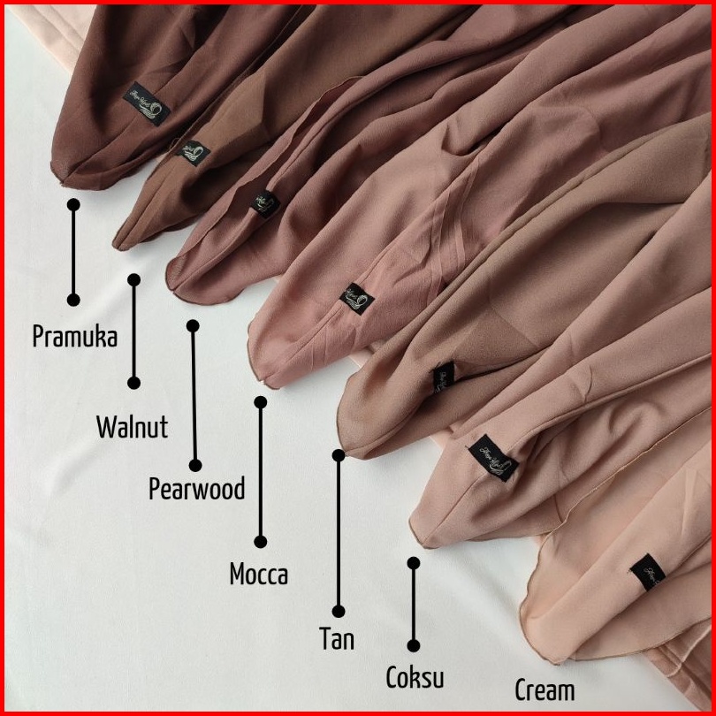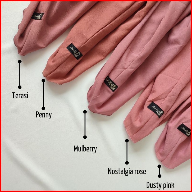 maroon, Cinnamond, mustard, Ijo wardah, black, navy, silver, broken white, white, dark choco, Lilac, soft purple, dusty purple, Nostalgia rose, Matcha, Coksu, Olive, Mocca, Penny, Denim, Taro, Bottle, Bata, Tan, Terasi, Latte, Dusty pink muda, Cream, Grey, Dark grey, Mulberry, army, Caramel, Blue Black, Soft milo, Plum, Biru muda, Merah, Lime, Fanta, Merah cabe, Walnut, Lavender, Salem, Pink peach