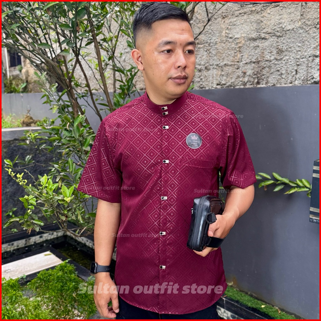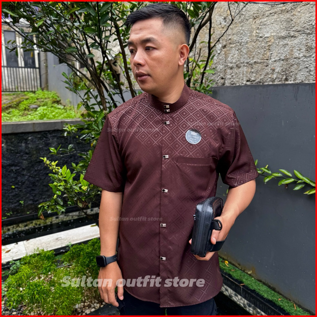 Baju Koko Pria Kemko Sultan Embos Kemeja Koko Pria Dewasa Lengan Pendak Panjang Motif Diamond Terbaru