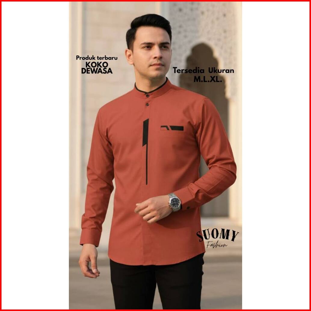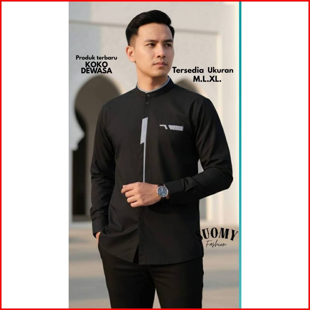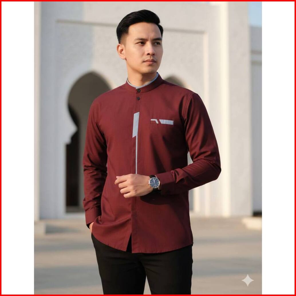 Baju Koko Pria Baju Koko Lengan Panjang Motif Malvin Bahan Katun Toyobo
