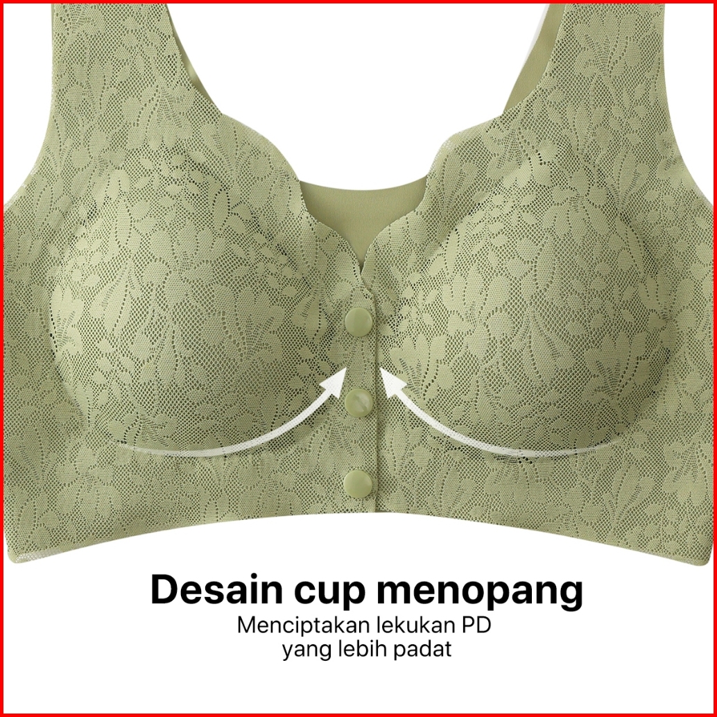 Greney-l.w.l- Paket Bra 2 Pcs Rompi Renda Kancing Depan Pakaian Dalam Push Up Bra Wanita Sport Tanpa Kawat Busa-89697