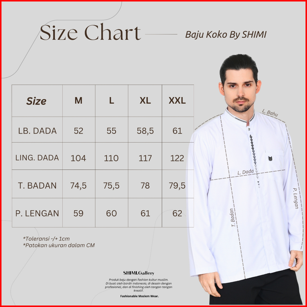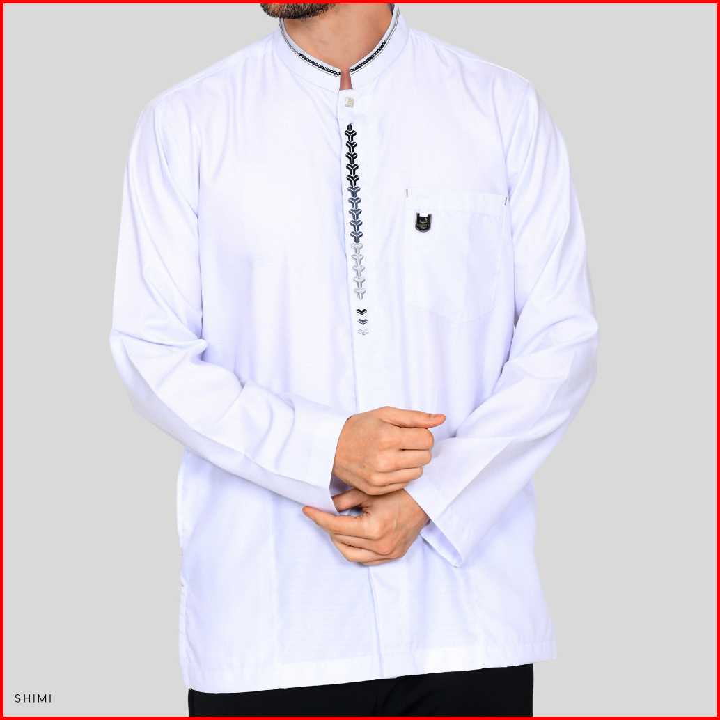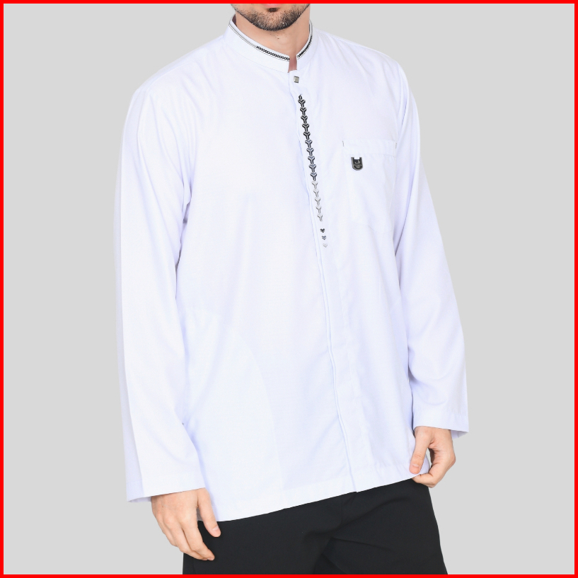 Baju Koko Putih Atasan Muslim Pria Dewasa Lengan Panjang Motif Bordir Minimalis M L Xl Xxl