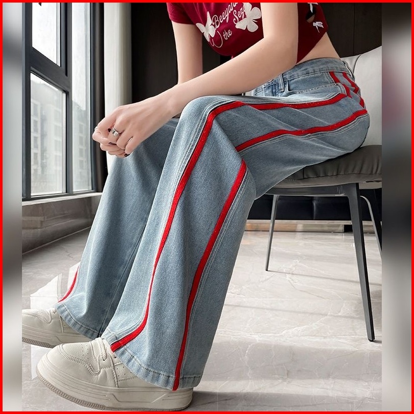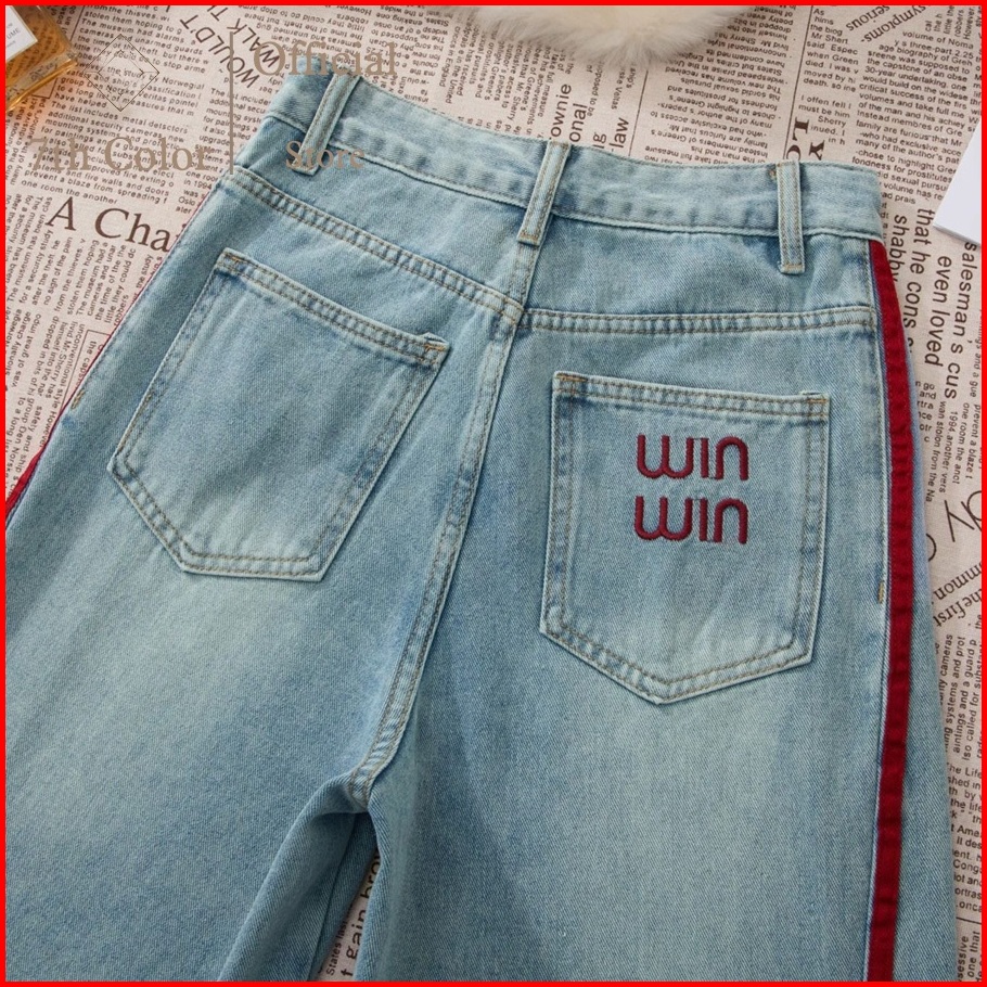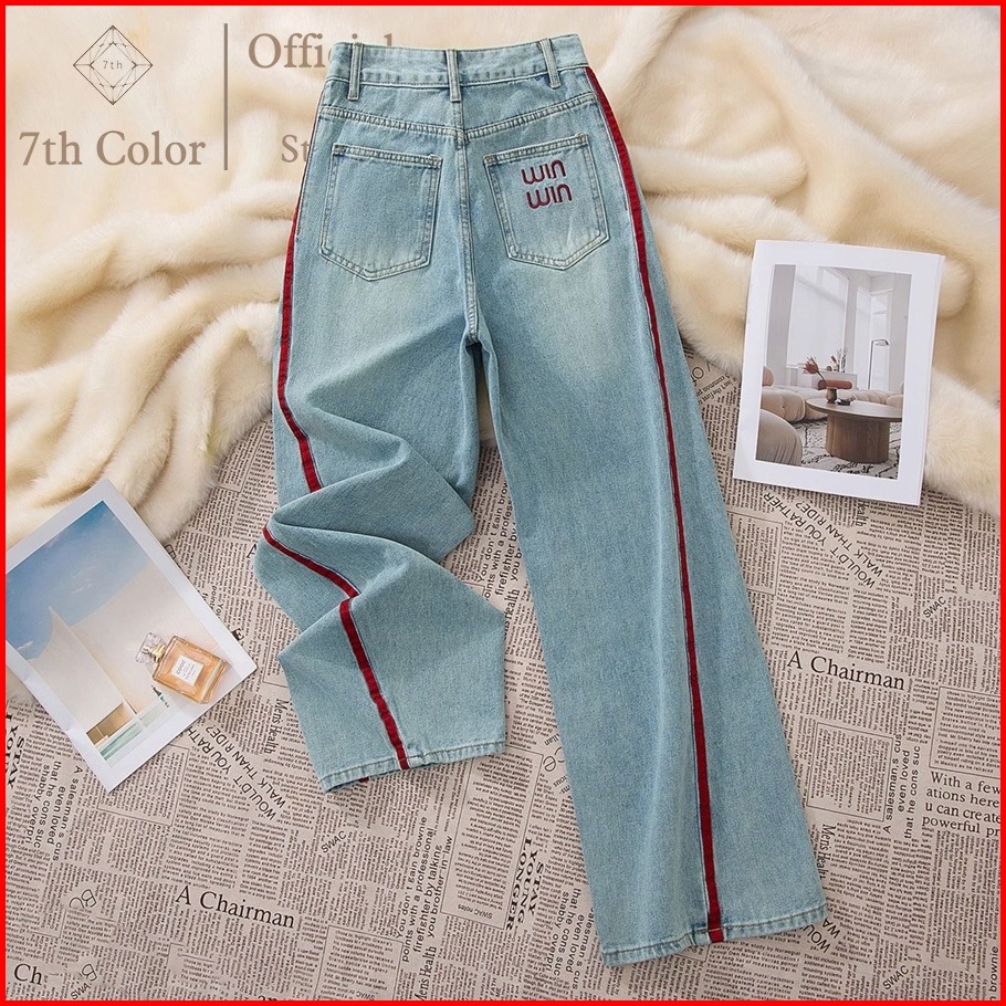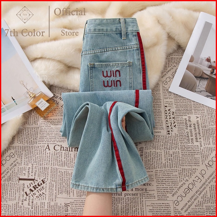 7th Color Straight Jeans Panjang Wanita Celana Korean Style Celana Kulot Denim Celana Highwaist Celana Biru Muda