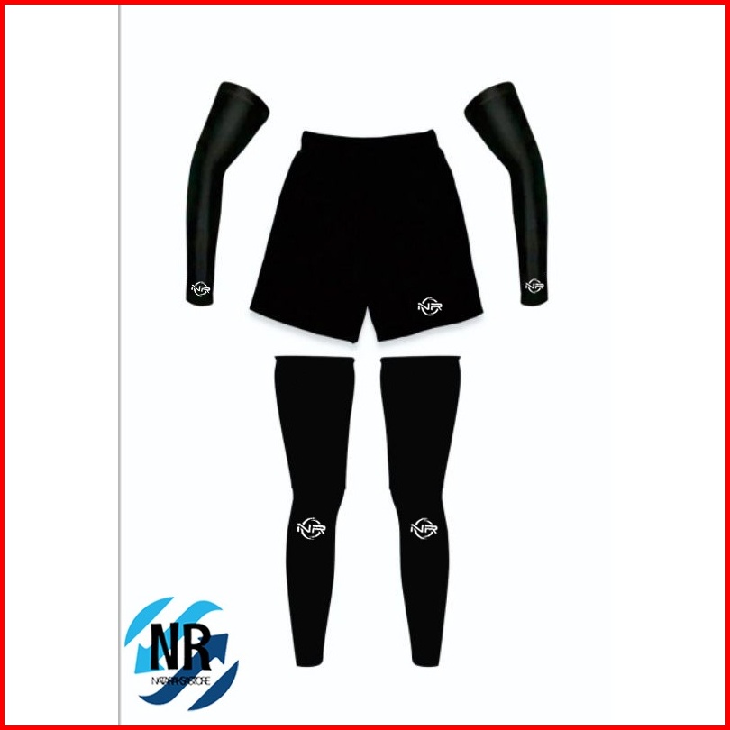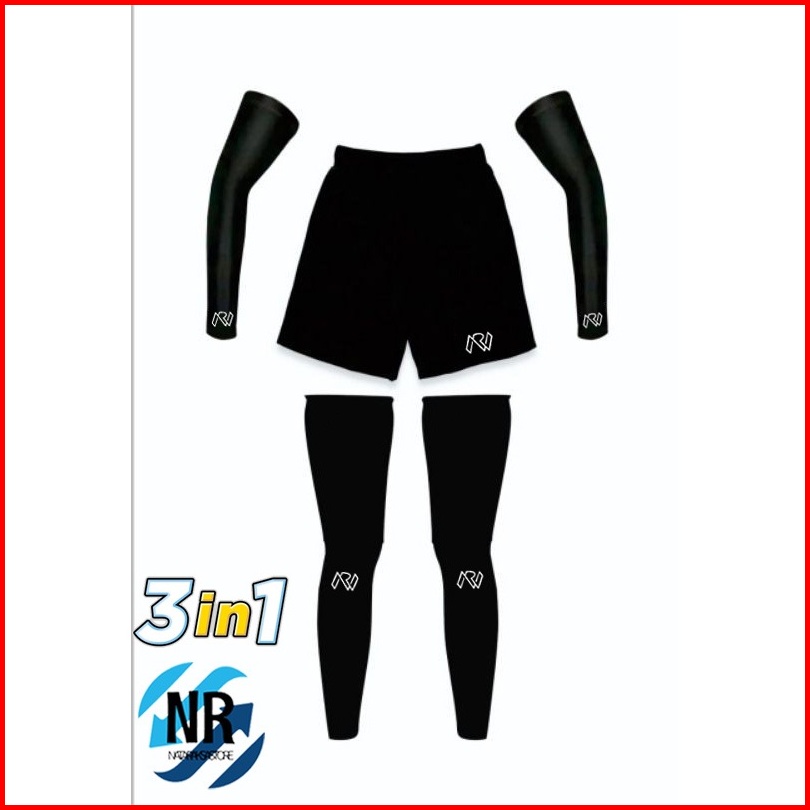 1set Setelan Manset Kaki Leg Sleeve Manset Tangan Legging Pendek Volly Lari Futsal Olahraga