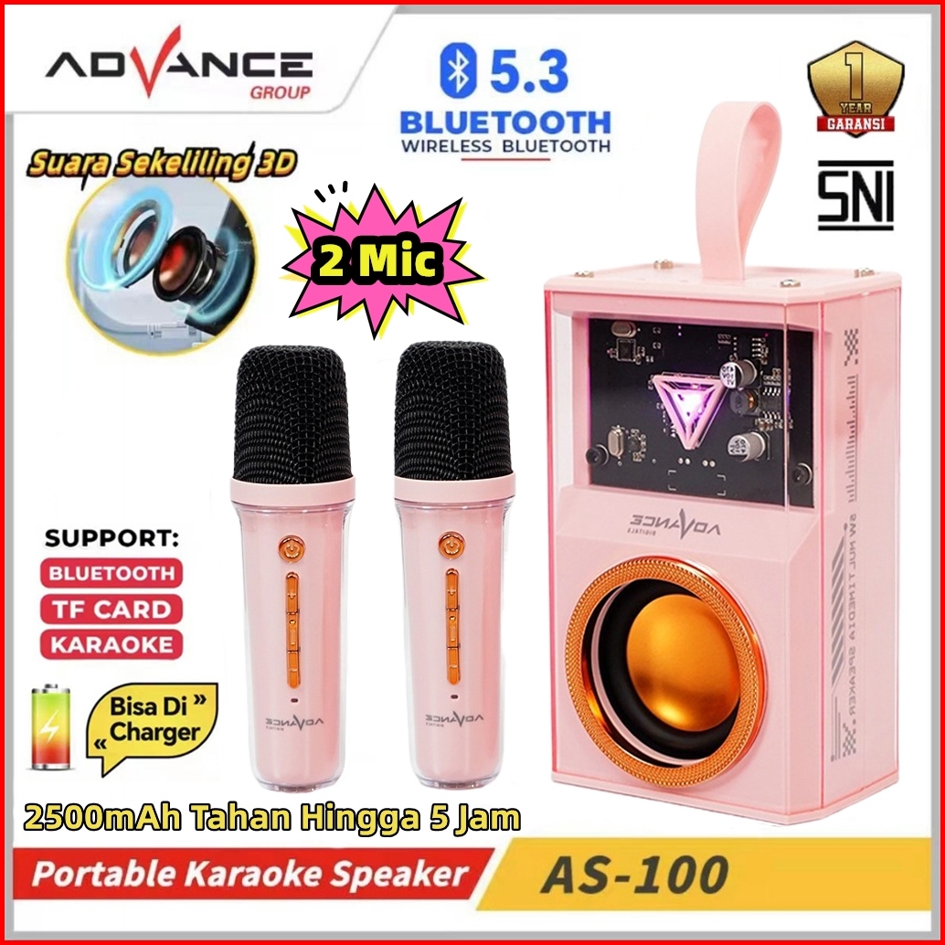 Garansi 1 Tahunadvance Speaker Bluetooth 2mic Wireless Microphone Bluetooth Karaoke Speaker Full Bass Portable