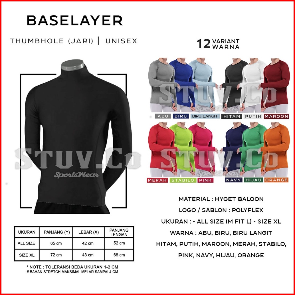 Manset Baselayer Tangan Panjang Thumbhole Longsleeve Manset Pria Olahraga Gym Sepakbola Futsal Lari