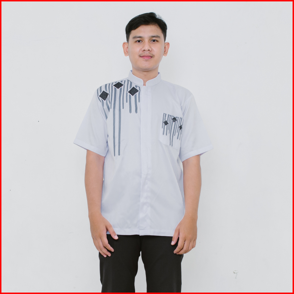 Baju Koko Pria Dewasa Lengan Pendek Bordir Terkini Katun Toyobo Premium