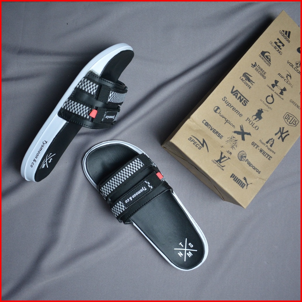 Tysmoon - Sandal Stereo Polkadot Hitam Putih Sandal Slide Pria Wanita
