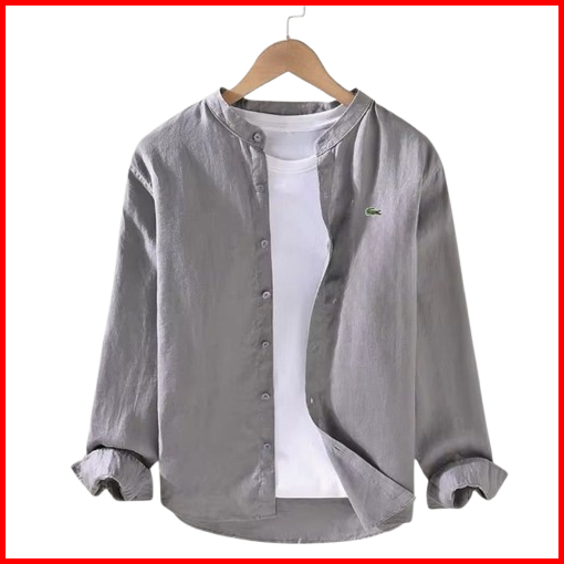 Kemeja Koko Shanghai Pria Lengan Panjang Kasual Slimfit Kemeja Kerah Shanghai Lengan Panjang Pria Bordir Logo Depan Prem