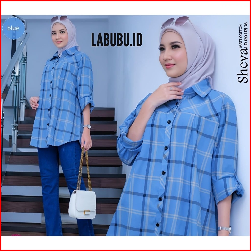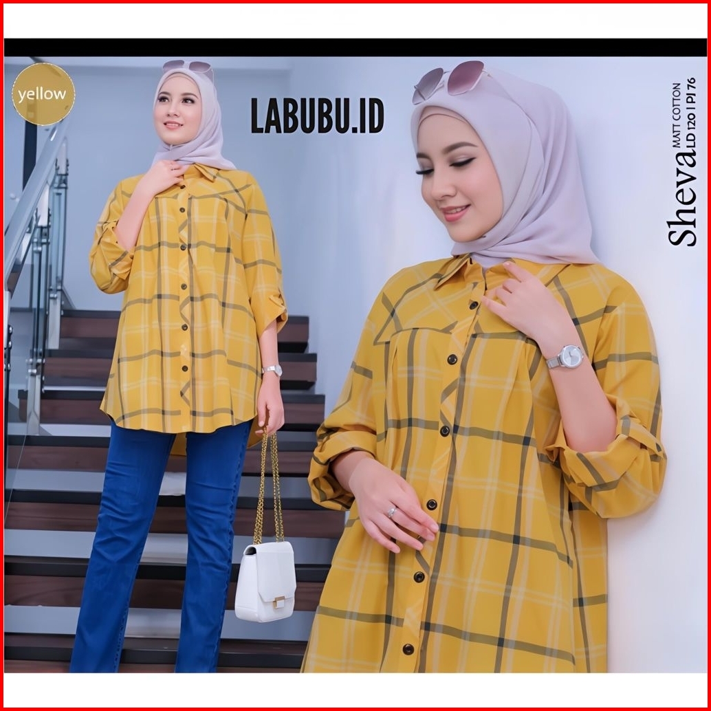 Kemeja Wanita Kekinian Motif Kotak Katun Lengan Panjang