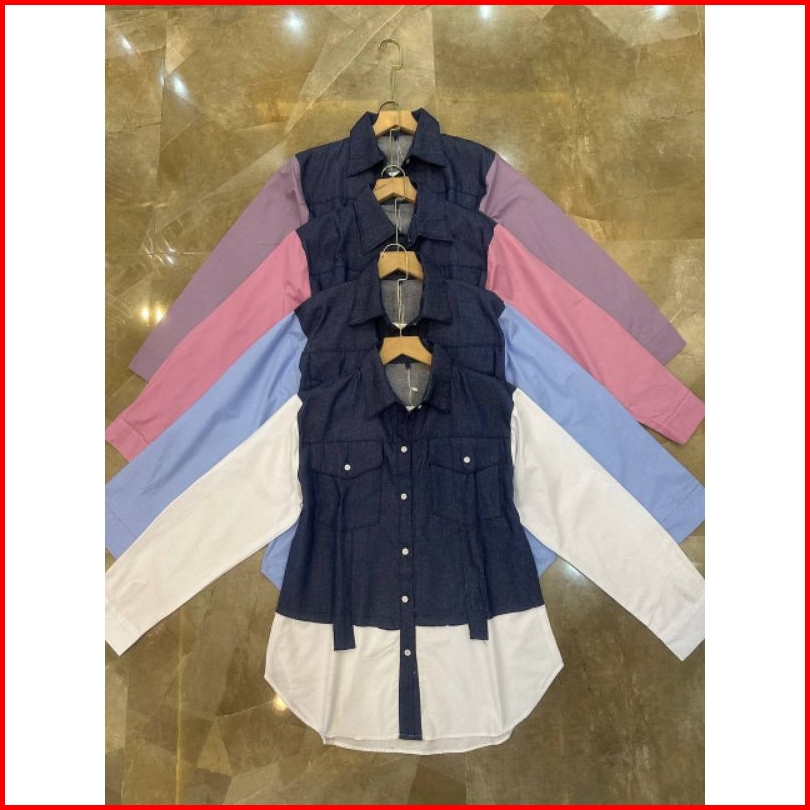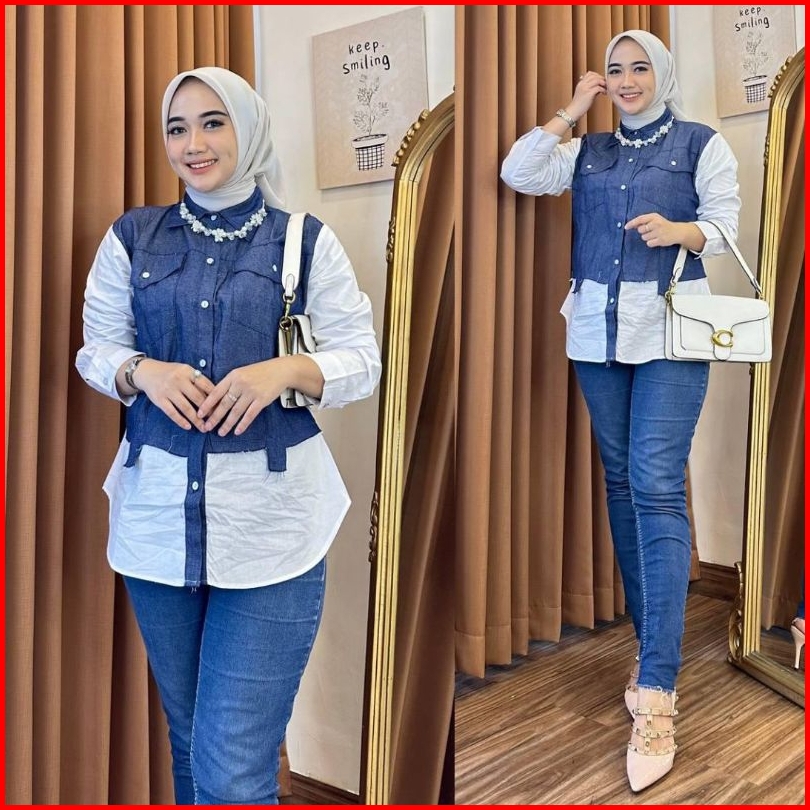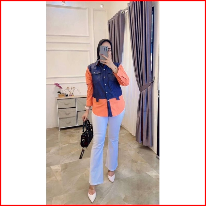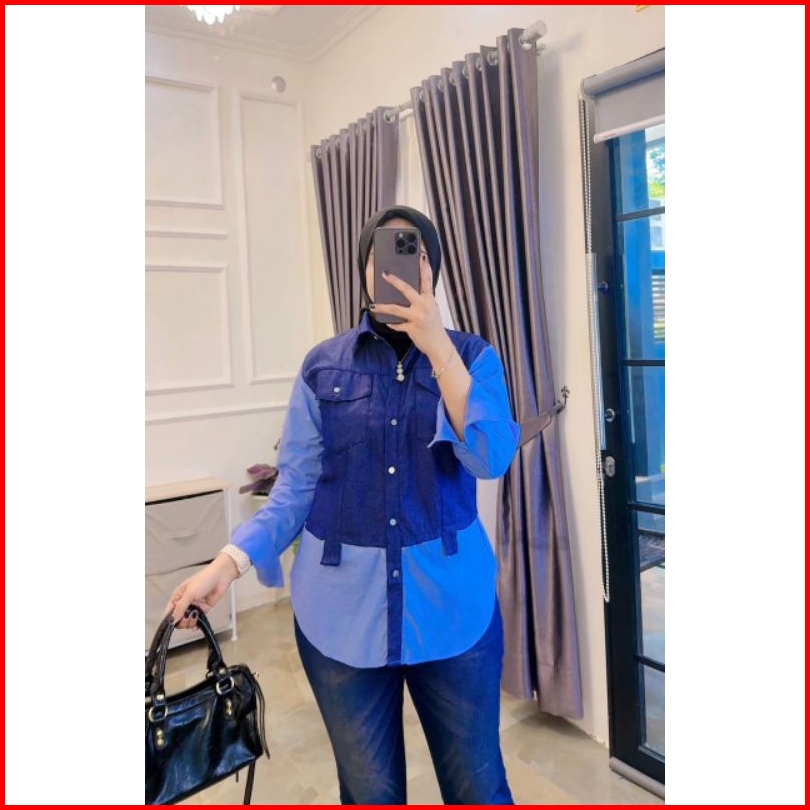 Kemeja Calissa Premium Atasan Wanita Dewasa Remajanya Bahan Katun Kombinasi Jeans Bukan Setelan Ya Model Kekinian Viral