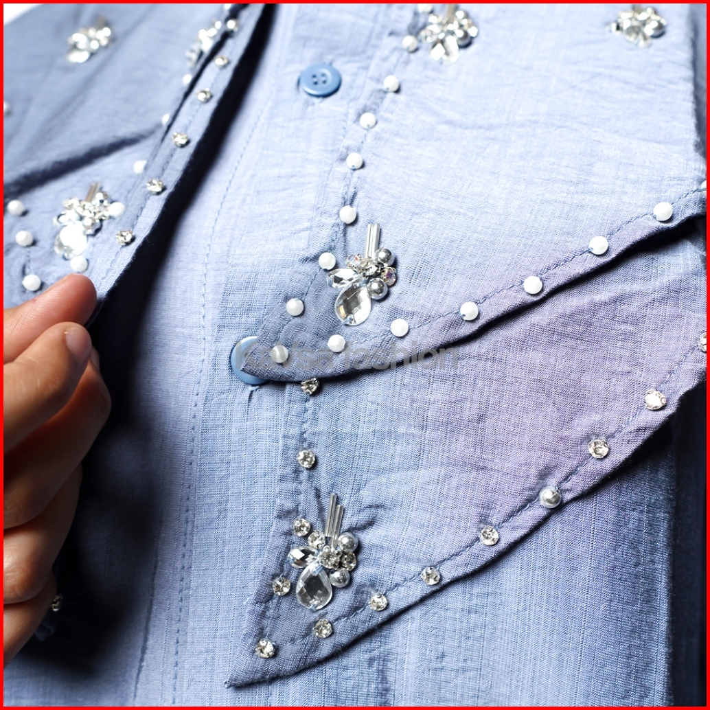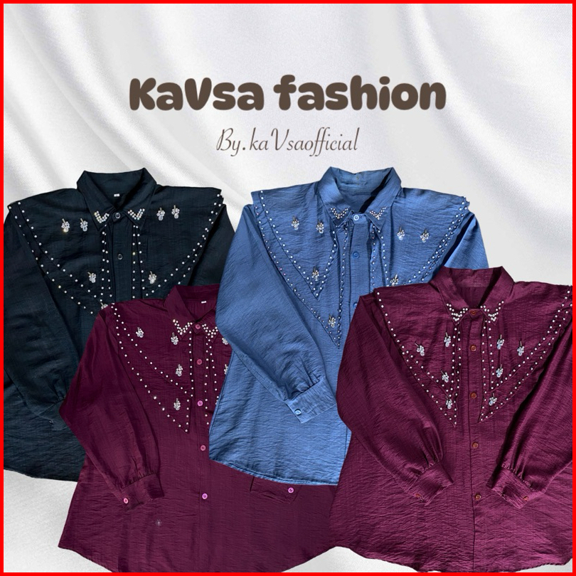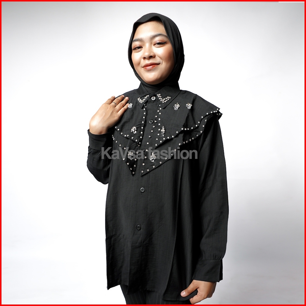 Kayla Blouse - Kemeja Wanita Premium Polo Linen Full Payet