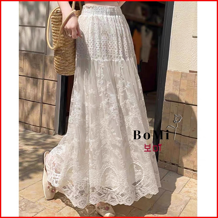 Bomi - Bora Skirt Rok Lace Brukat Vintage Premium Dengan Furing Panjang Maxi