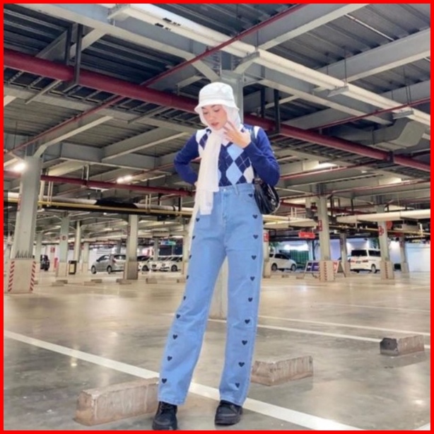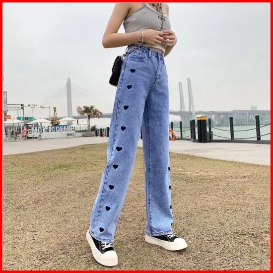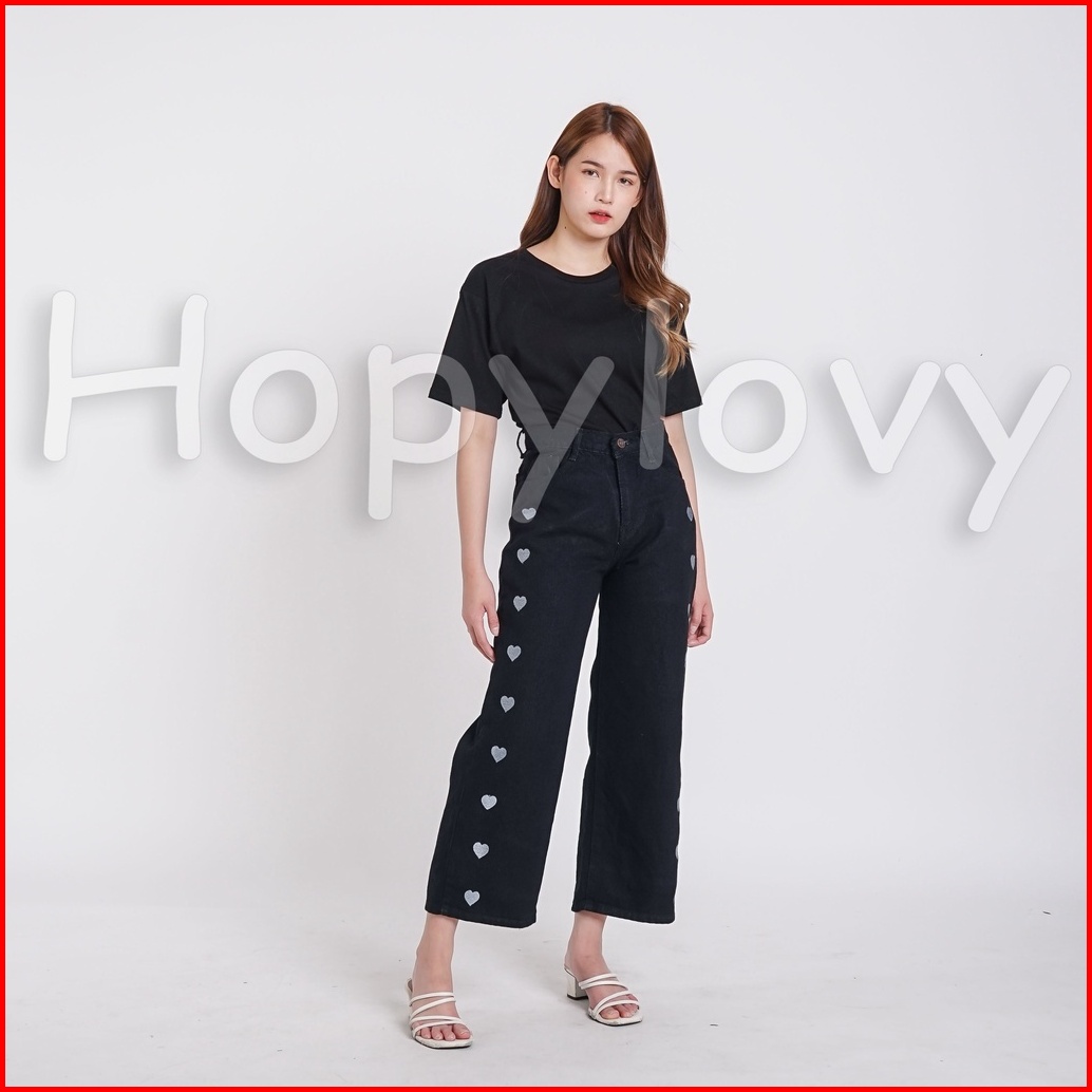 Hopylovy Celana Kulot Jeans Highwaist Wanita Bf Jeans Bordir Love Mahikaa