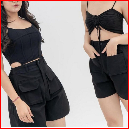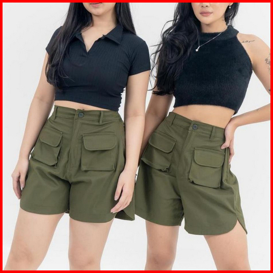Poka Shortpant Celana Pendek Wanita Kargo Pokka Shortpants Cargo Shortpant Cargo Celana Pendek High Waist Katun Kargo Hi
