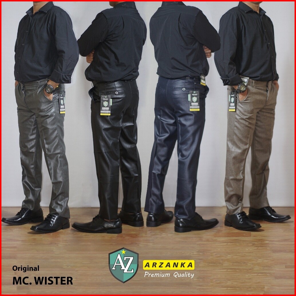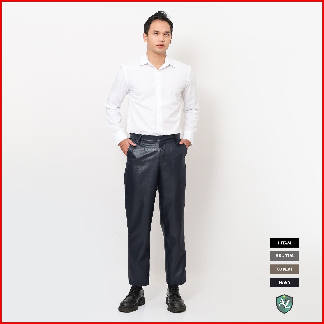 Arzanka - Celana Kerja Formal Kantor Bahan Mengkilap Metalik Hitam Abu Navy Coklat