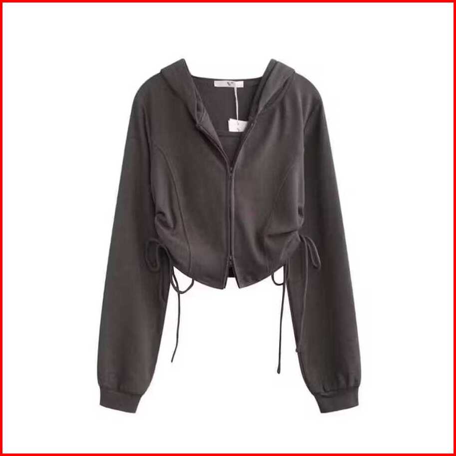 Sweater Jaket Wanita Crope Zipper Hoodie Adelaaa