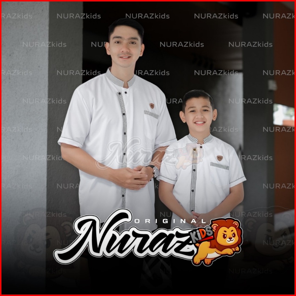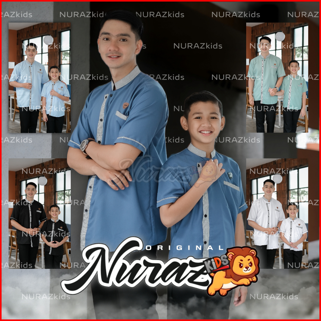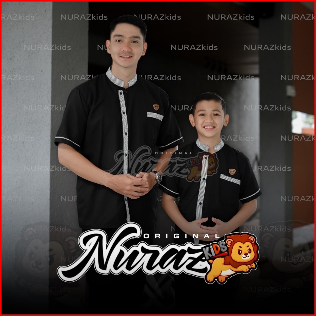 Nuraz Kids Baju Koko Couple Ayah Anak Legan Pendek Motif Selempang Bahan Katun Signature