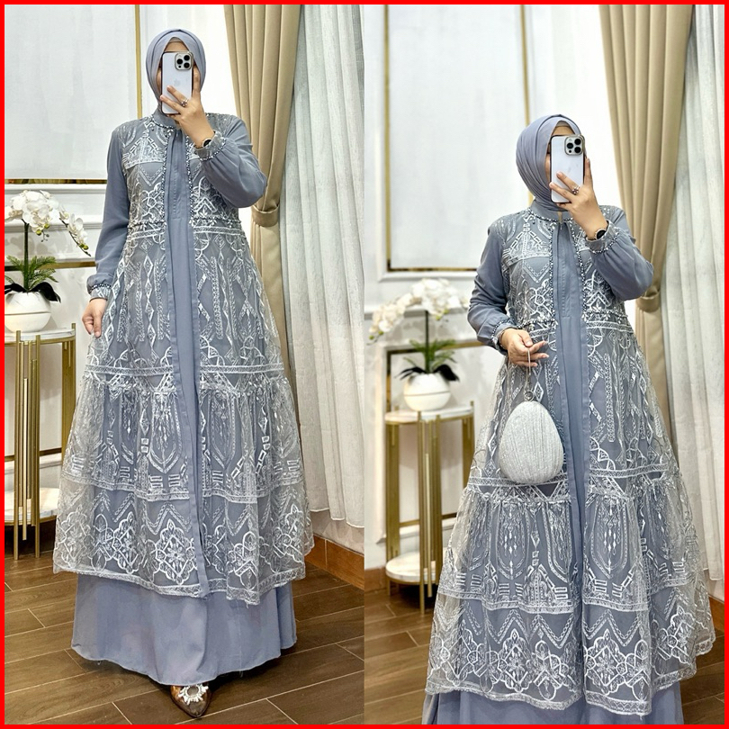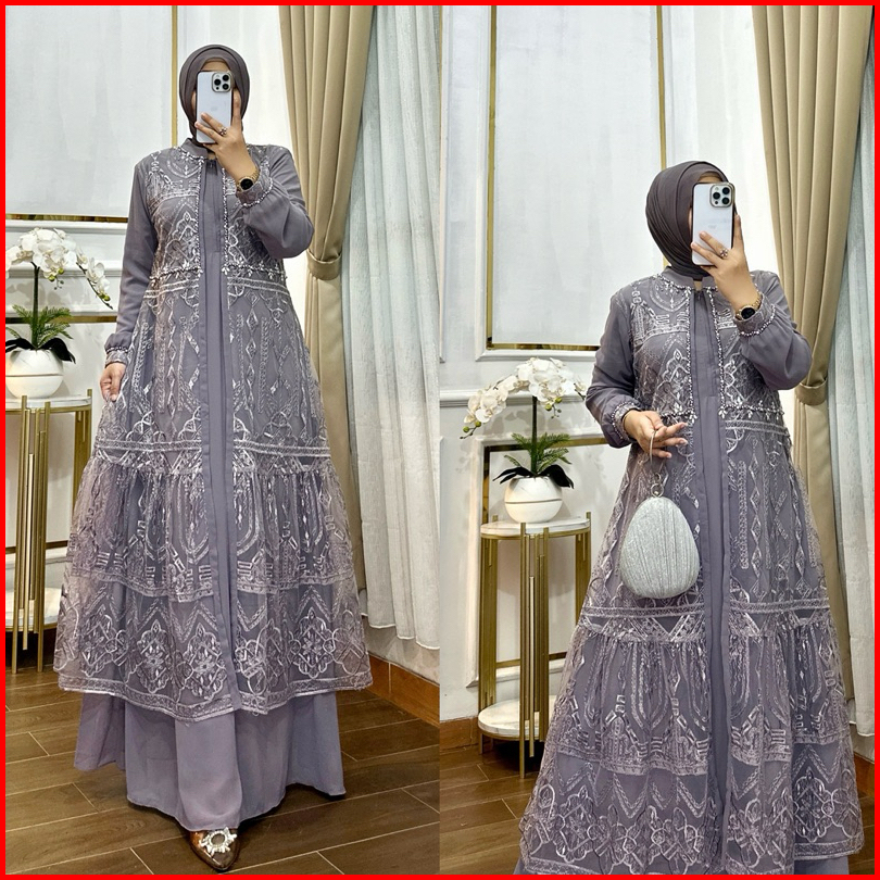Almira Dress Busui Ceruty Babydoll Gamis Pesta Mewah Terbaru Baju Kondangan Wanita Muslim Busana Lebaran Tersedia Ukuran