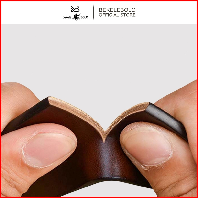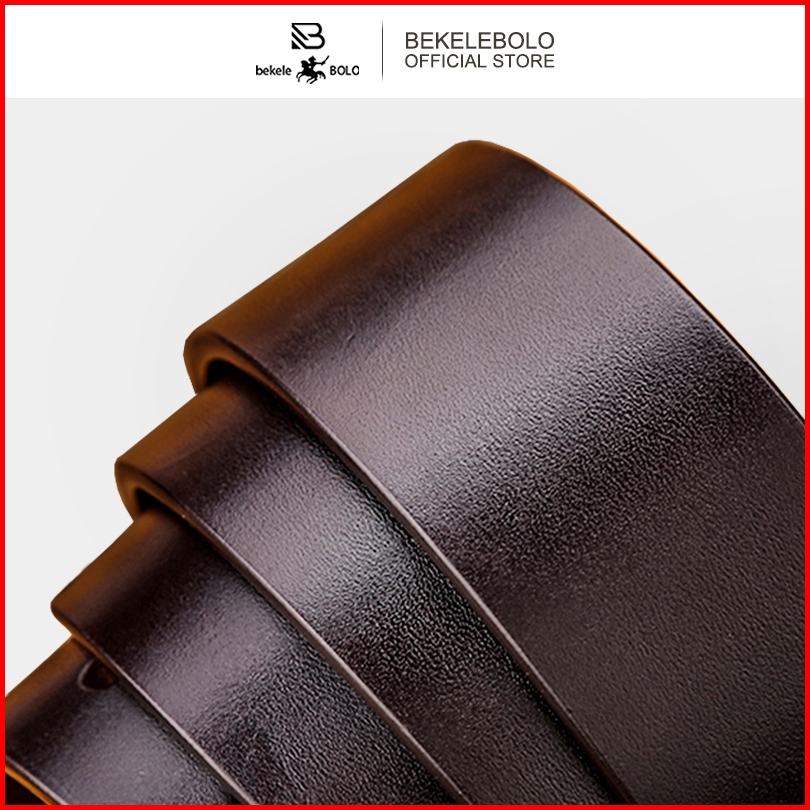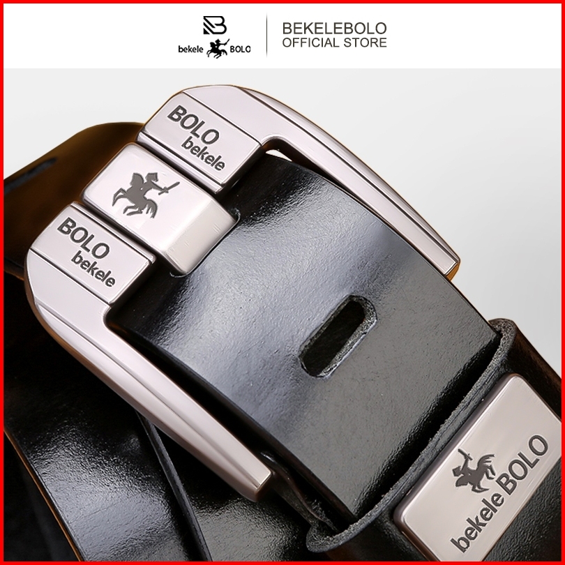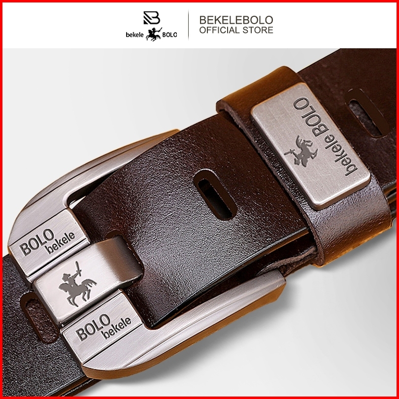 Bekelebolo 010 Sabuk Pria Tampan Fashion Sabuk Kulit Sapi 2lapisan Gaya Kancing Pin Klasik Sabuk