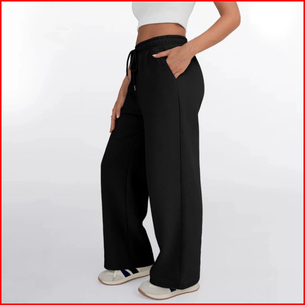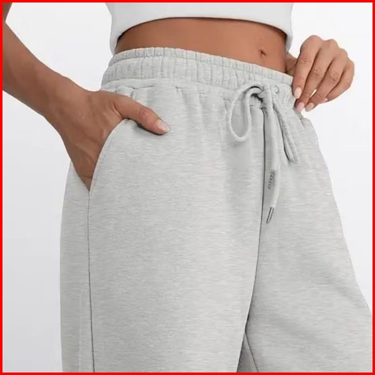 Celana Panjang Loose Pants High Waist Wanita Jumbo Kantong Dua Soft Fleece
