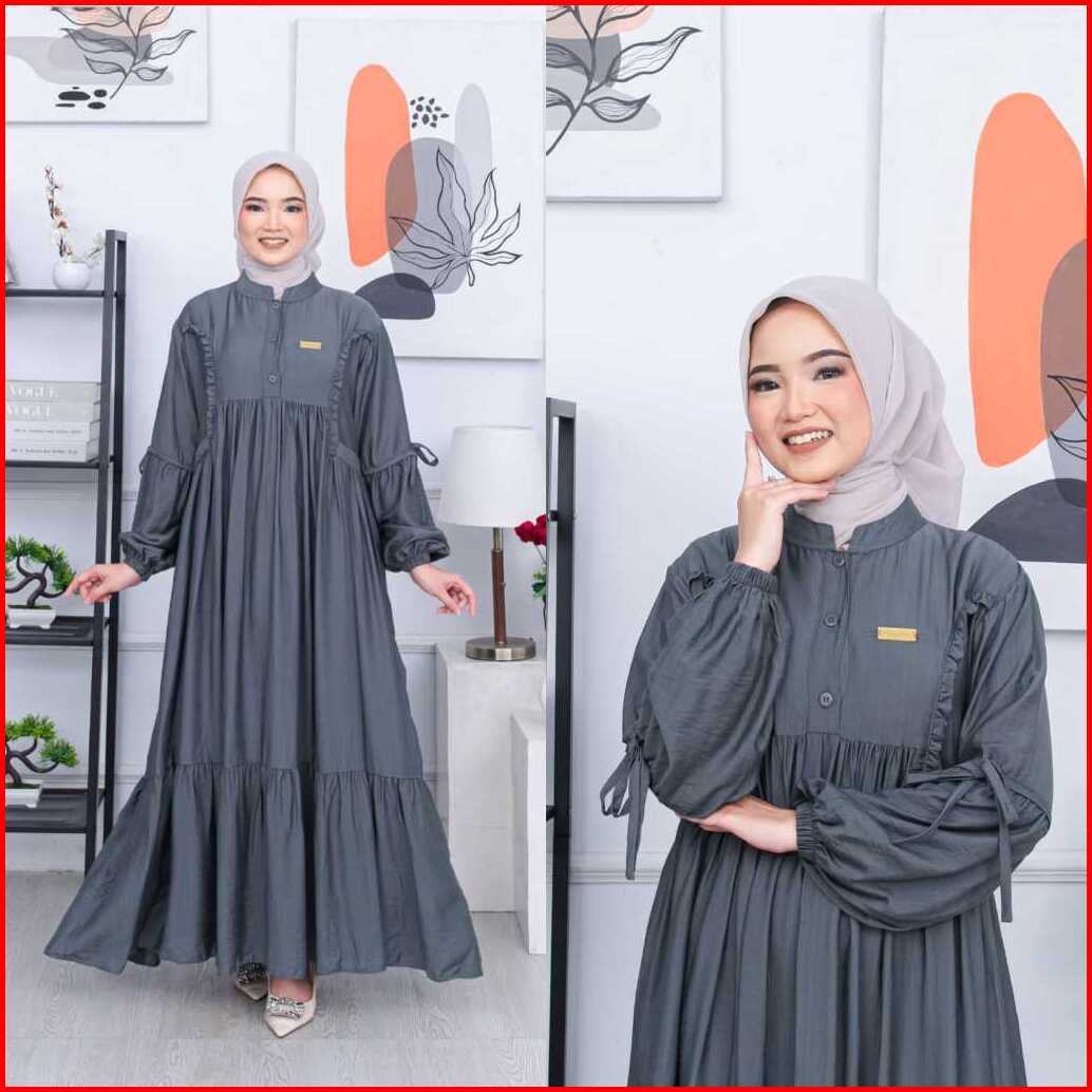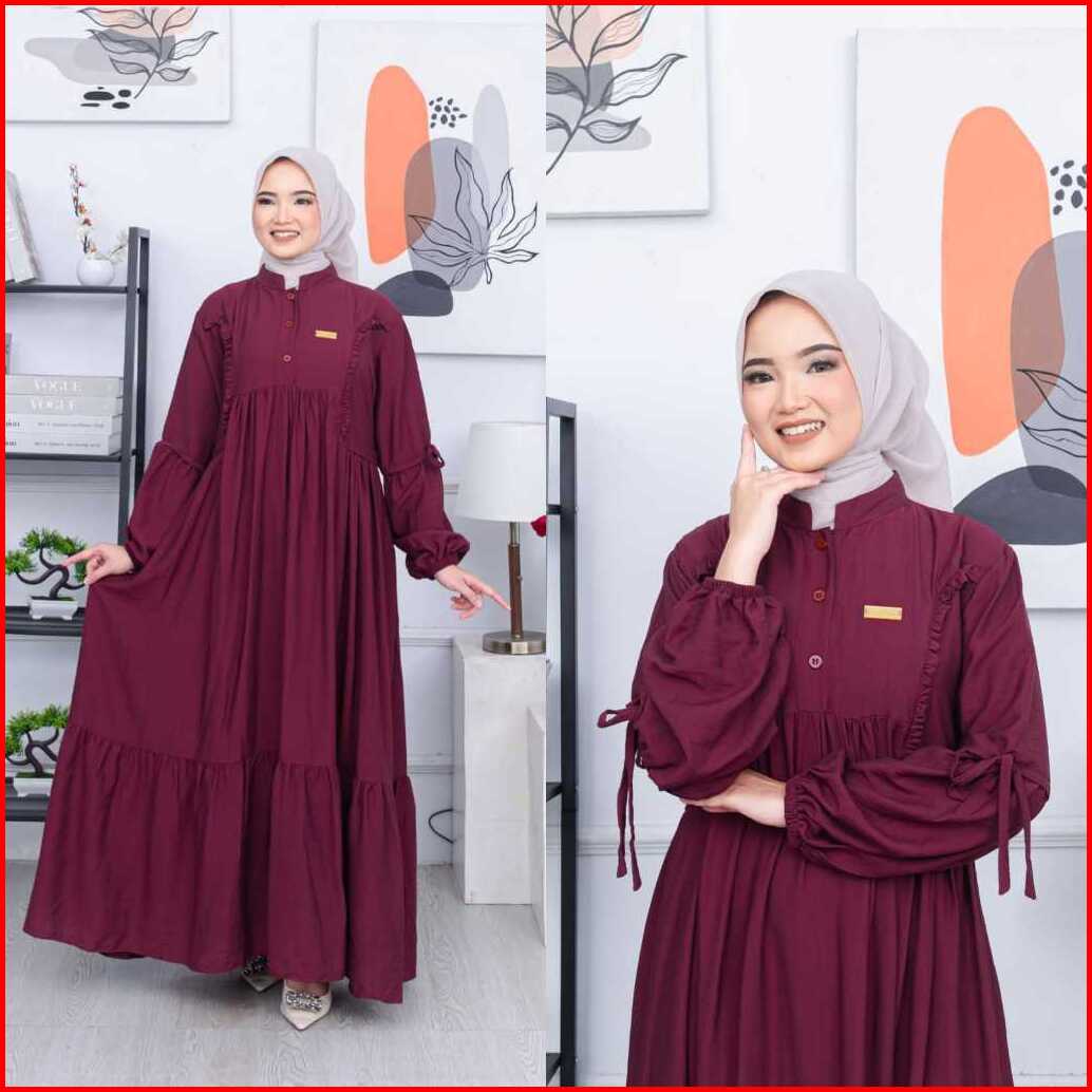Zafira Dress Gamis Muslimah Polos Polo Linen Aksen Kancing Variasi Ruffle Cantik Busui Friendly
