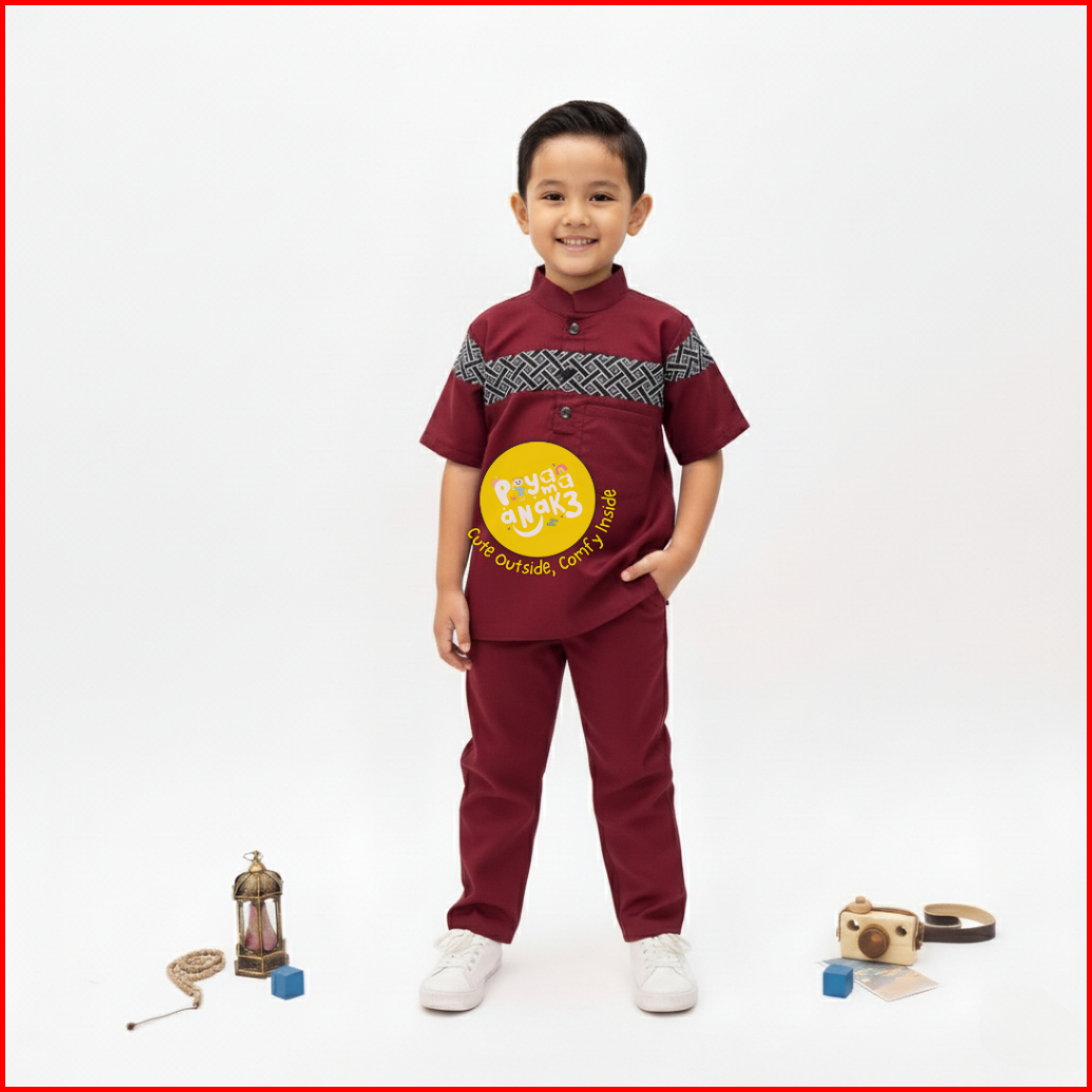 Setelan Koko Kurta Turki Dada Batik Garis Anak Usia 1-10 Tahun Mlxl 81012