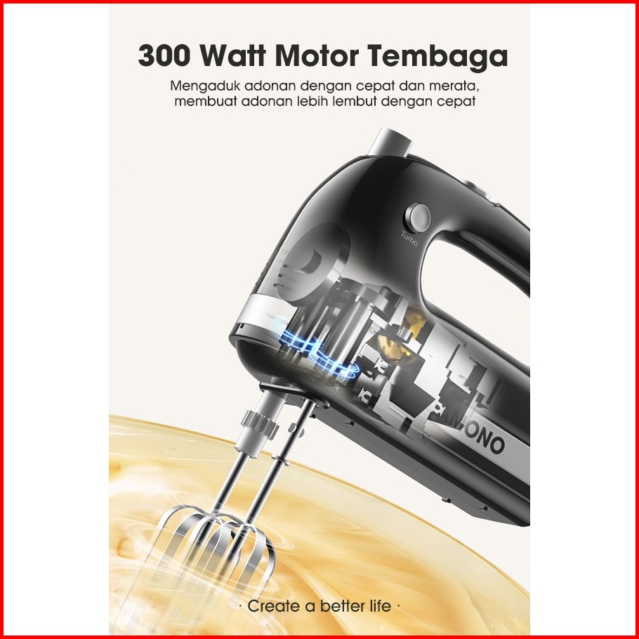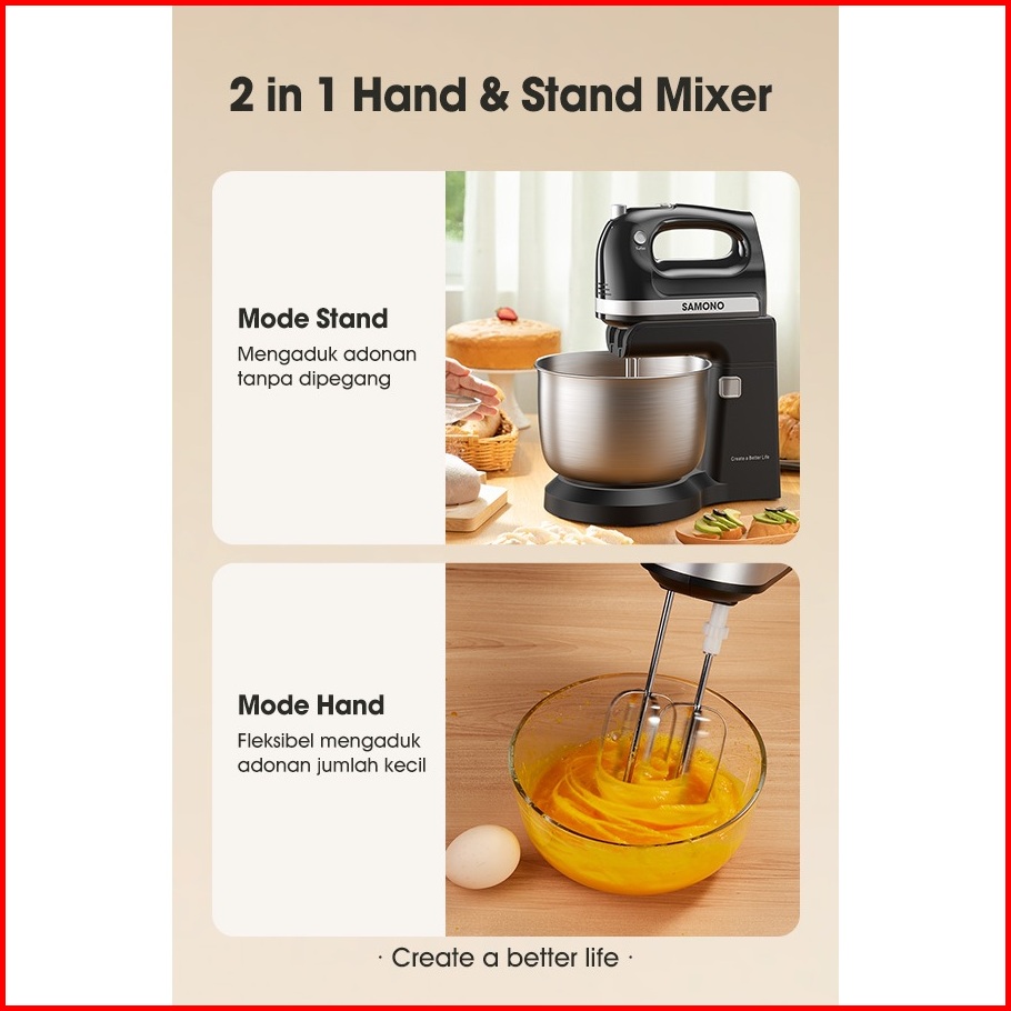 Samono Stand Mixer Baking 4l Pengaduk Adonan 300 Watt 5 Kecepatan Sw-hmb300 Garansi Ganti Baru