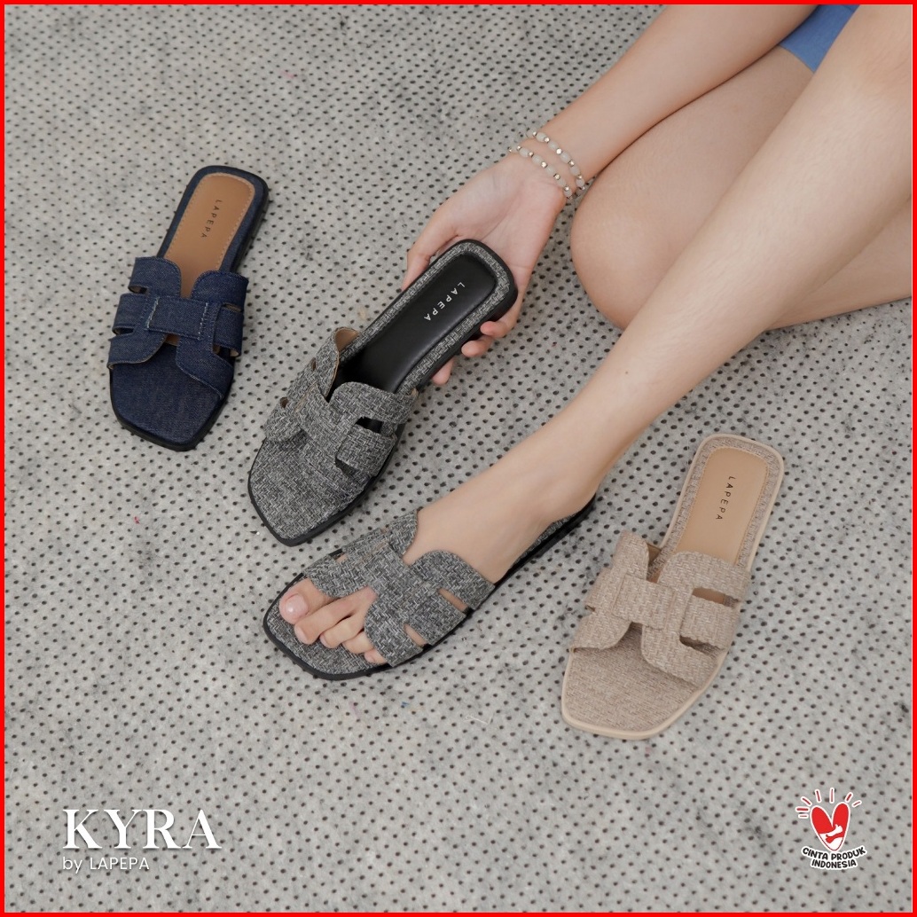 Lapepa Kyra Sandal Selop Wanita Denim Sendal Slop Bahan Jin Cantik Casual Size 36-41