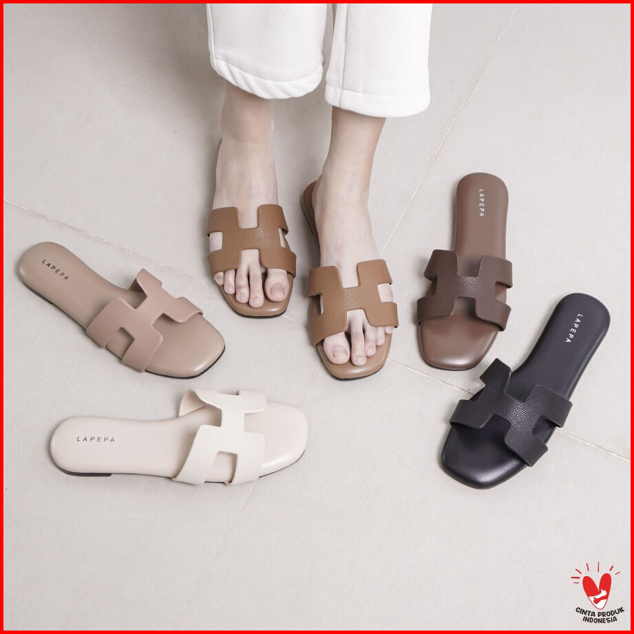Lapepa Yuk - Orlin Sandal Wanita Teplek Korea Casual Premium Size 36 - 41 Sendal Slop Empuk Flat Cewek Kasual Rumahan