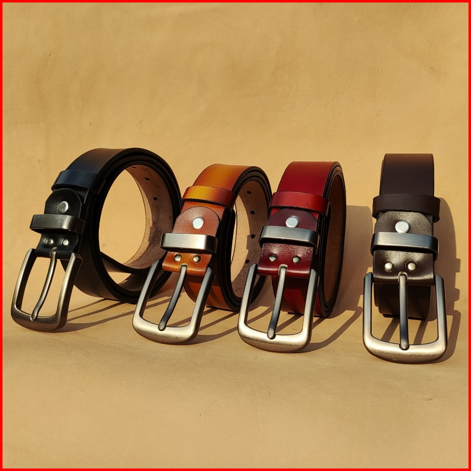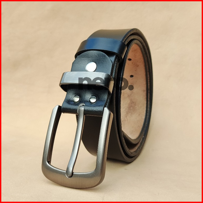 Sabuk Kulit Pria Ikat Pinggang Pria Kulit Asli Selapis Engkel Gesper Kepala Jarum Silver