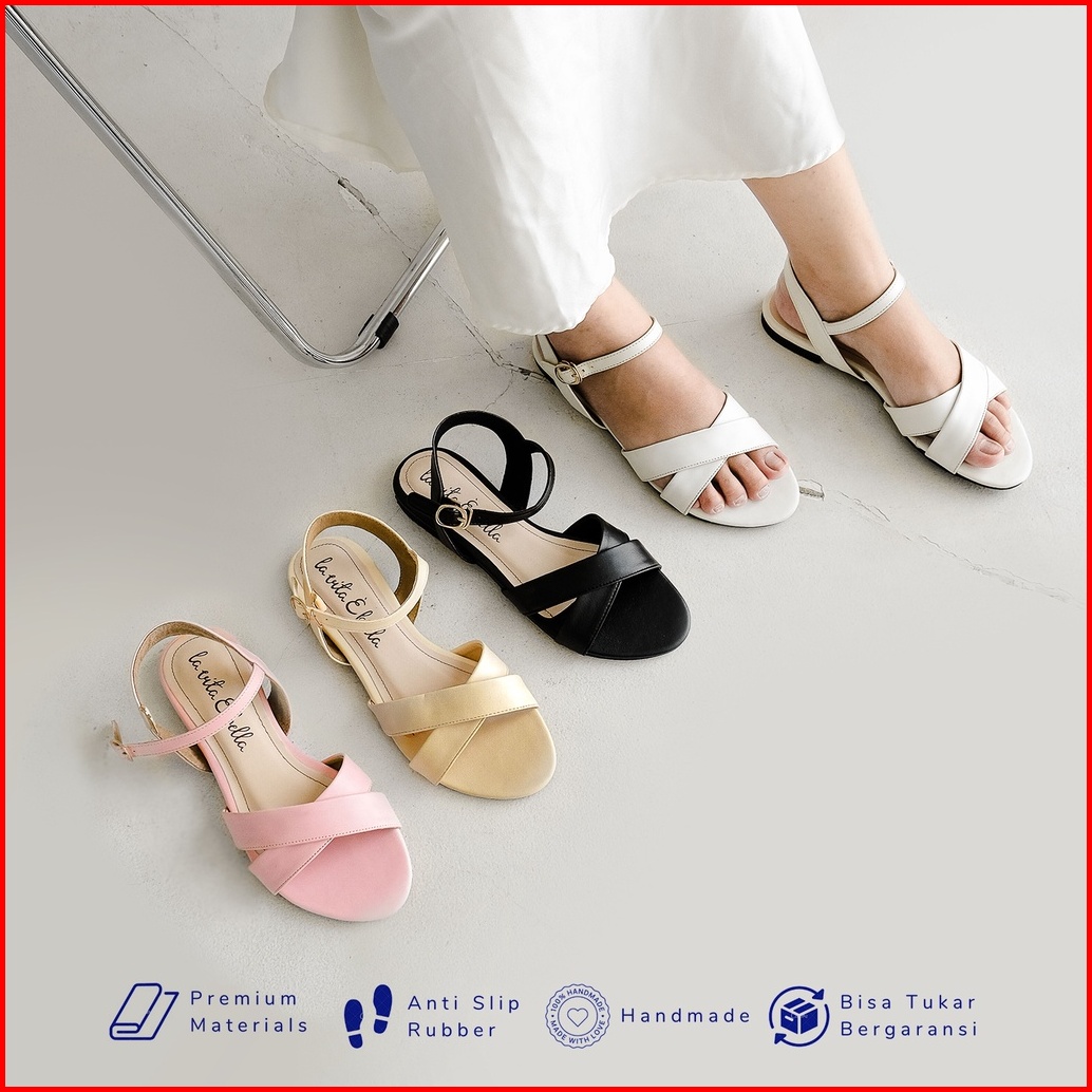 La Vita E Bella Sunny Ankle Strap Sandal Flat Teplek Wanita Vegan Leather - Lp500