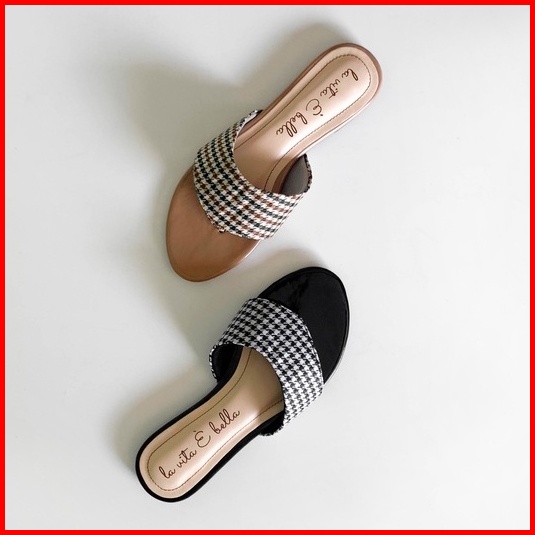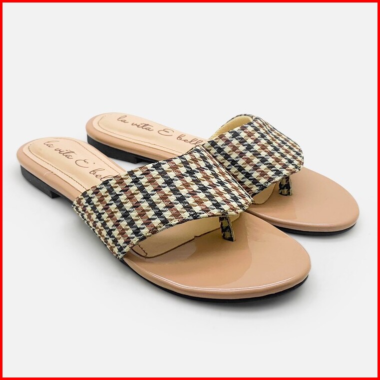 La Vita E Bella Josie Sandal Flip Flop Wanita Motif Houndstooth Lp 522