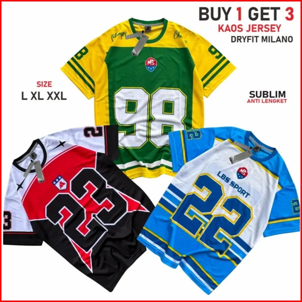 Paket 3pcs Kaos Jersey Dryfit Milano Motif Acak Size L Xl Xxl