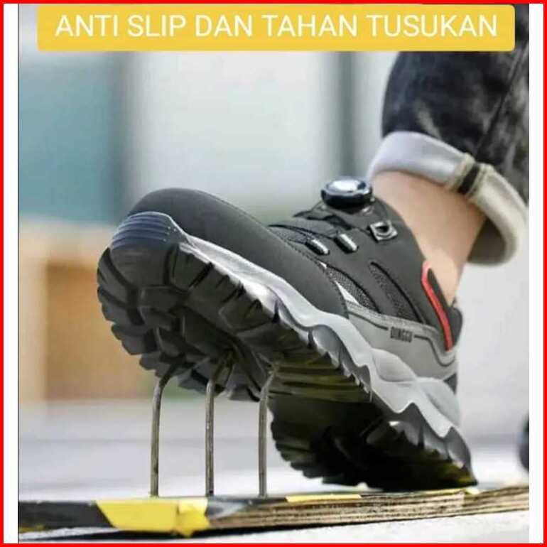 Sepatu Safety Ujung Besi Anti Slip Anti Tusuk Dan Benturan Tali Putar Ukuran 39-45