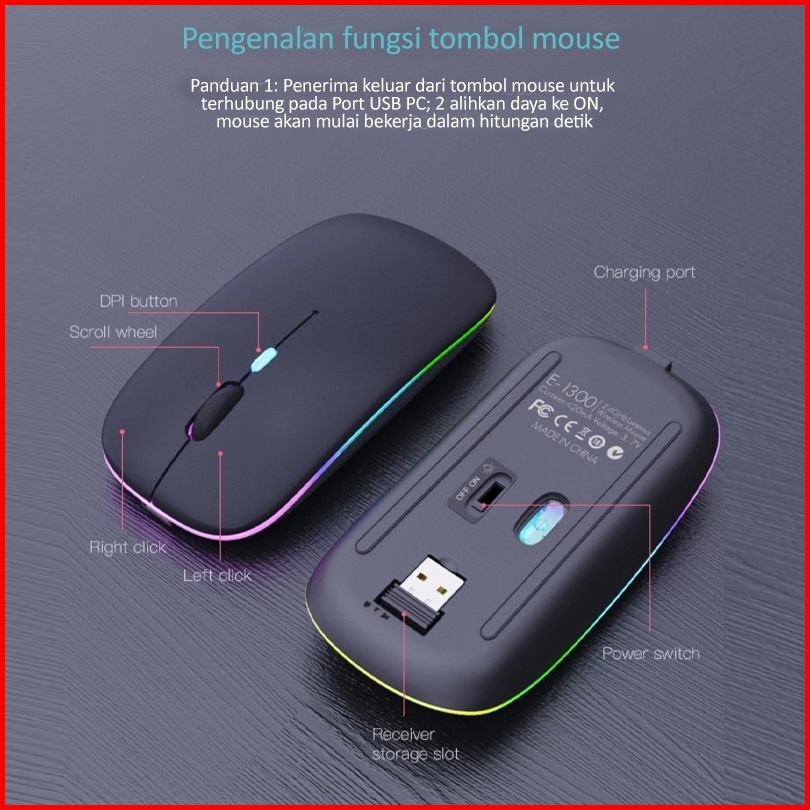 Skytime S9 Mouse Bluetooth 5.4 Receiver Usb Dongle 2.4ghz Silent Click Rechargeable 1600dpi Untuk Pc Laptop Hp