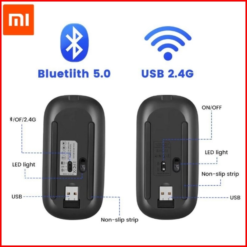 Mouse Xiaomi Bluetooth Wireless Recharger Silent Baterai Isi Ulang Mi