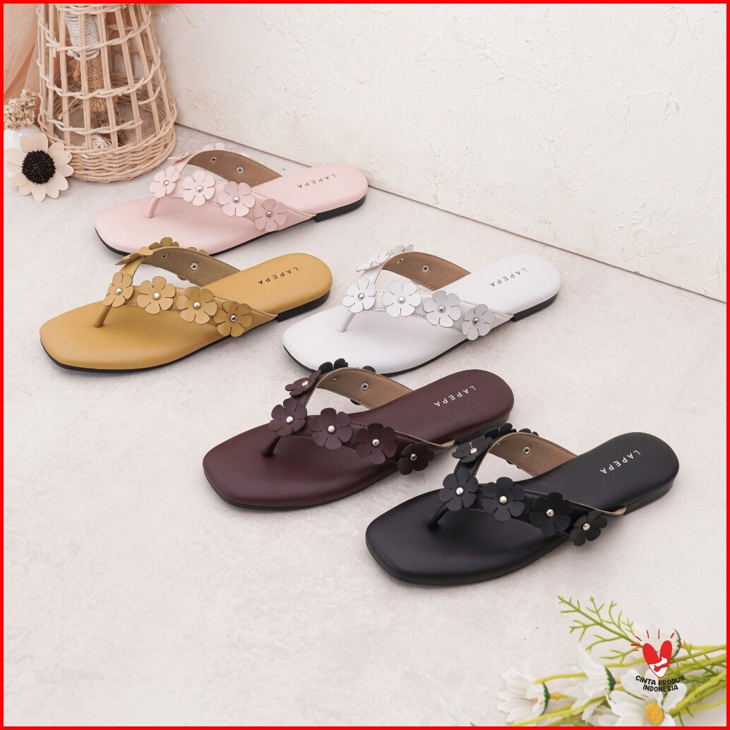 Lapepa Yuk - Stella Sandal Wanita Teplek Motif Bunga Casual Premium Size 36 - 41 Sendal Jepit Lucu Empuk Flat Cewek Kasu